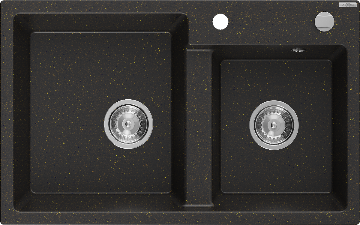 Mexen Tomas Νεροχύτης γρανίτης 2-διαμερισμάτων 800 x 500 mm, μαύρο/χρυσό