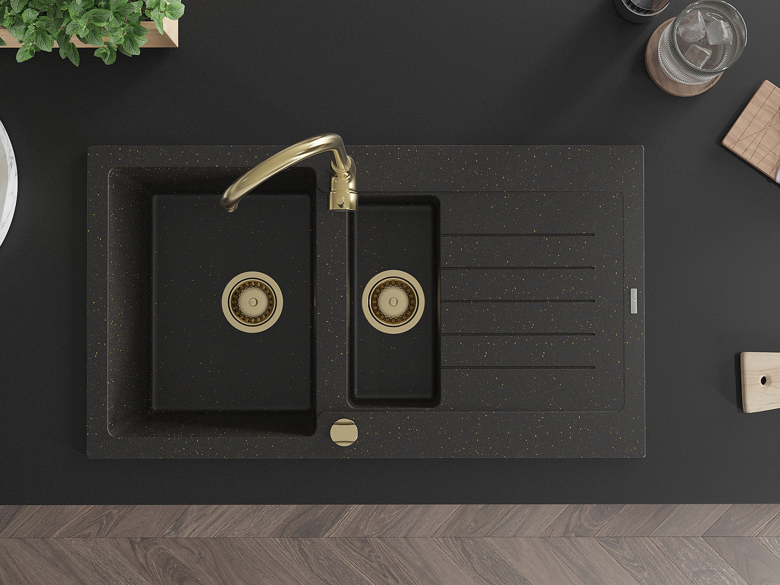Mexen Matias νεροχύτης από γρανίτη 1,5 θαλάμων με επιφάνεια αποστράγγισης 900