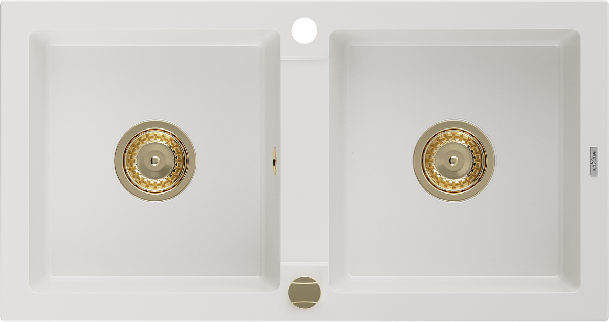 Mexen Mario νεροχύτης γρανίτης 2-διαμερίσματα 820 x 436 mm, λευκός, χρυσό σιφόνι