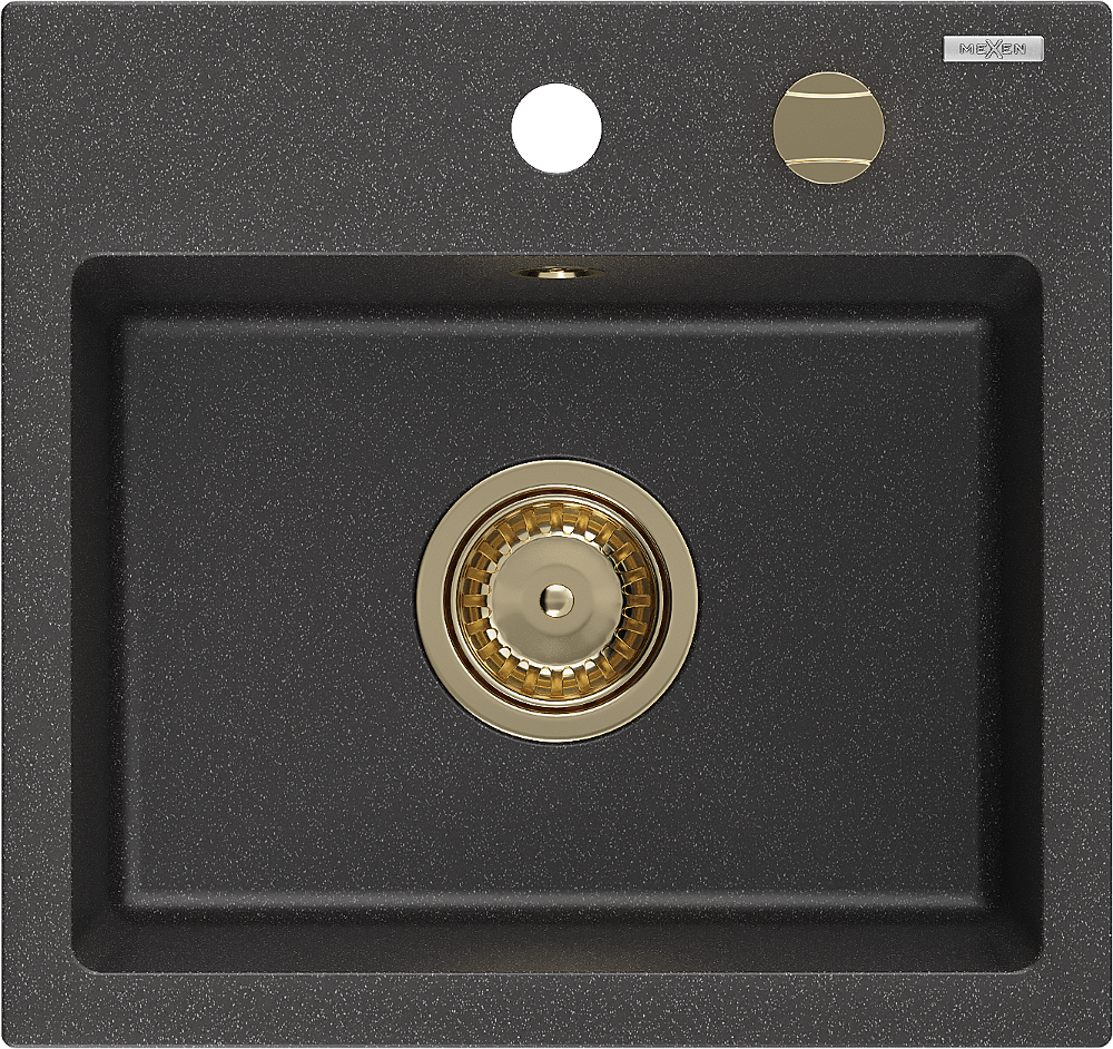 Mexen Milo νεροχύτης γρανίτης 1-θάλαμος 435 x 410 mm, μαύρο στίγματα, σιφόνι