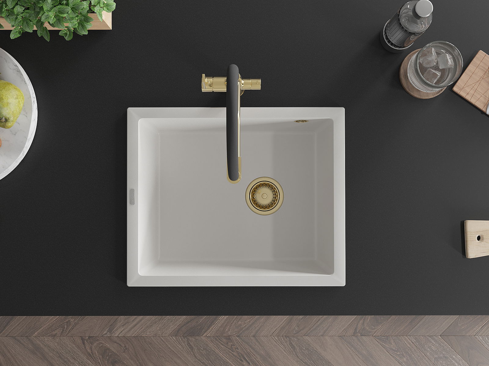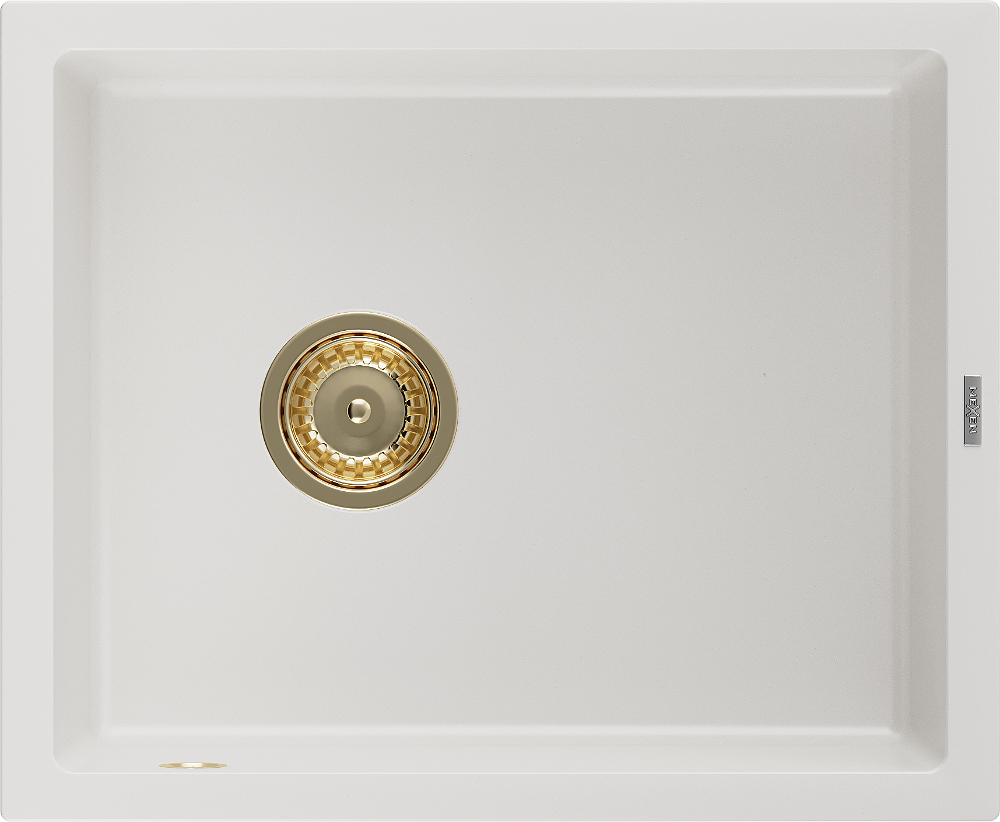 Mexen Pedro Νεροχύτης Γρανίτης 1 Θάλαμος 560 x 460 mm, Λευκός, Σιφόνι Χρυσό