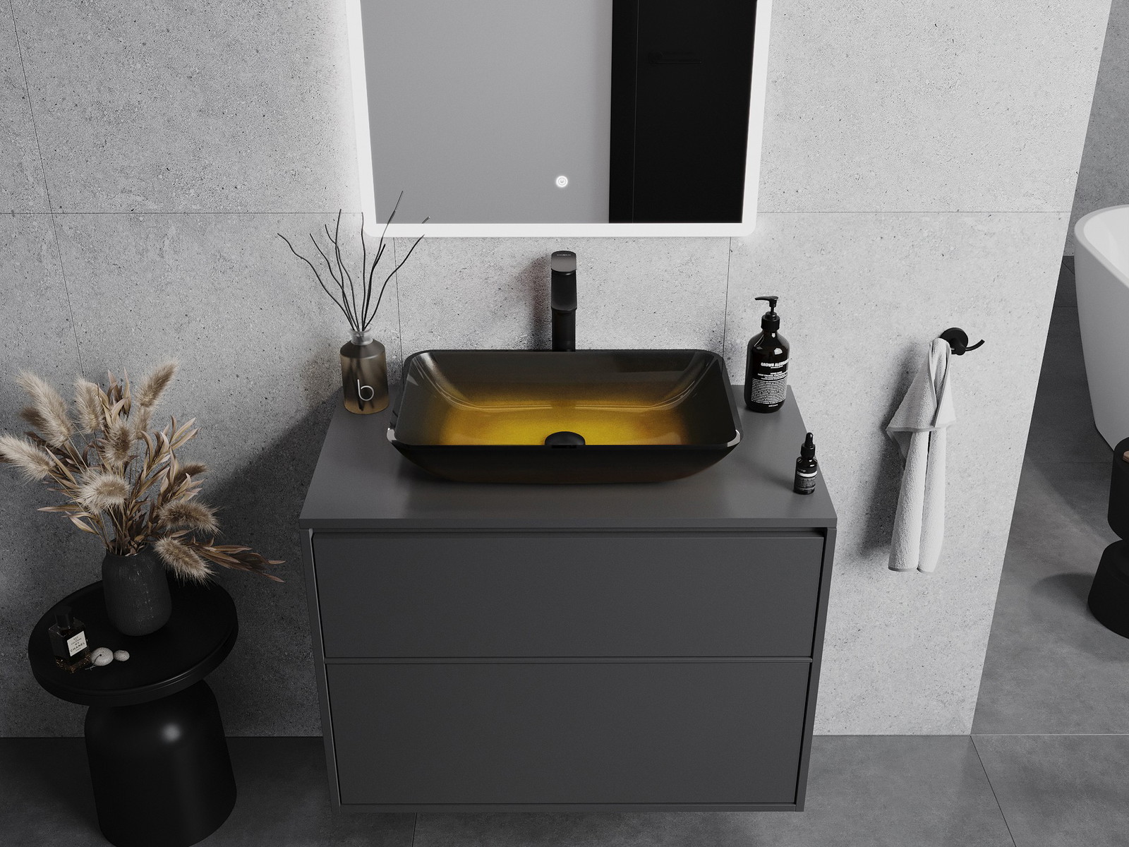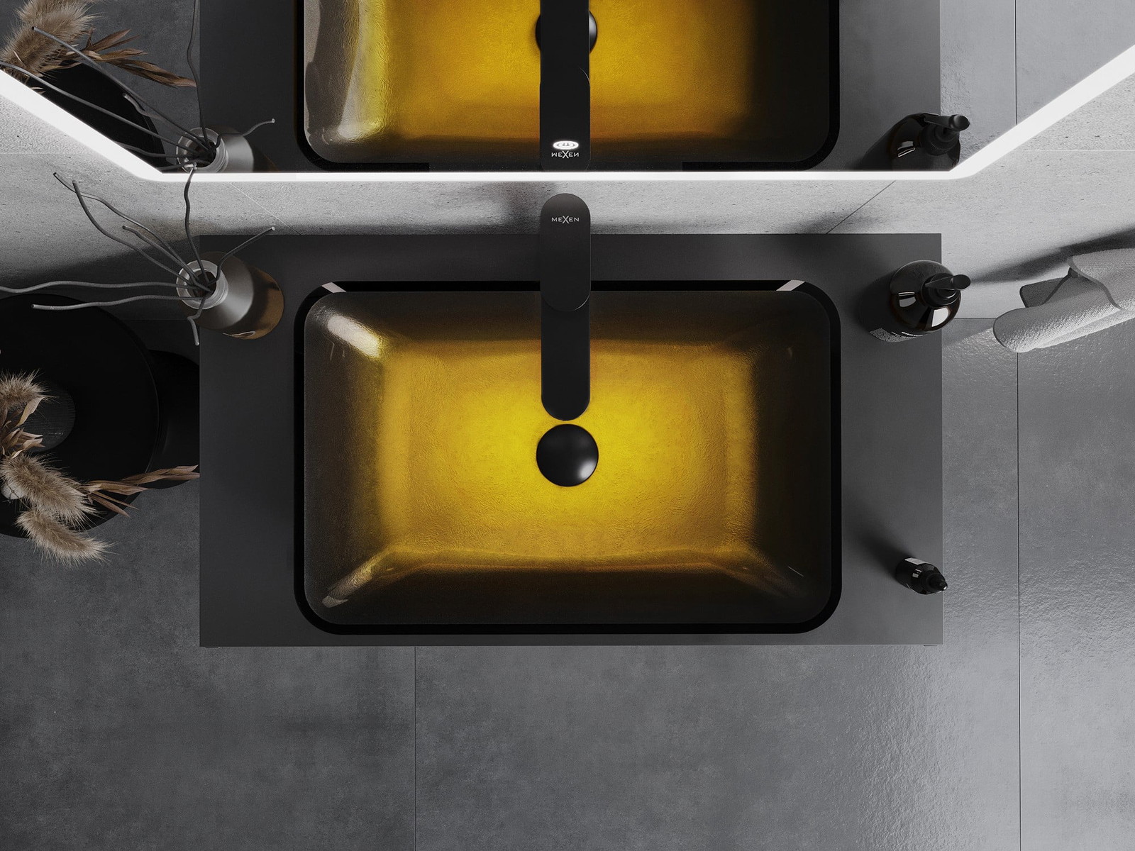 Mexen Megan γυάλινος νιπτήρας επιτραπέζιος 56 x 36 cm, σκούρο χρυσό - 24135651