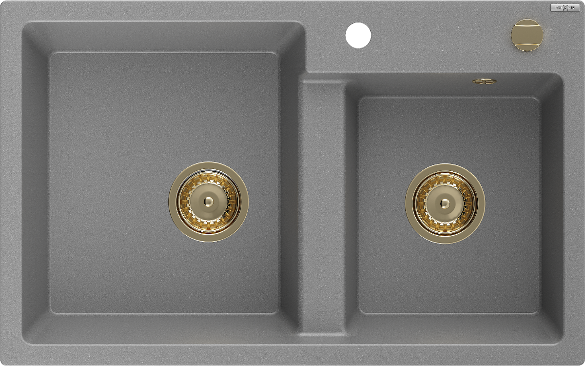 Mexen Tomas νεροχύτης γρανίτης διπλός 800 x 500 mm, γκρι, χρυσό σιφόνι - 6516802000-71-G