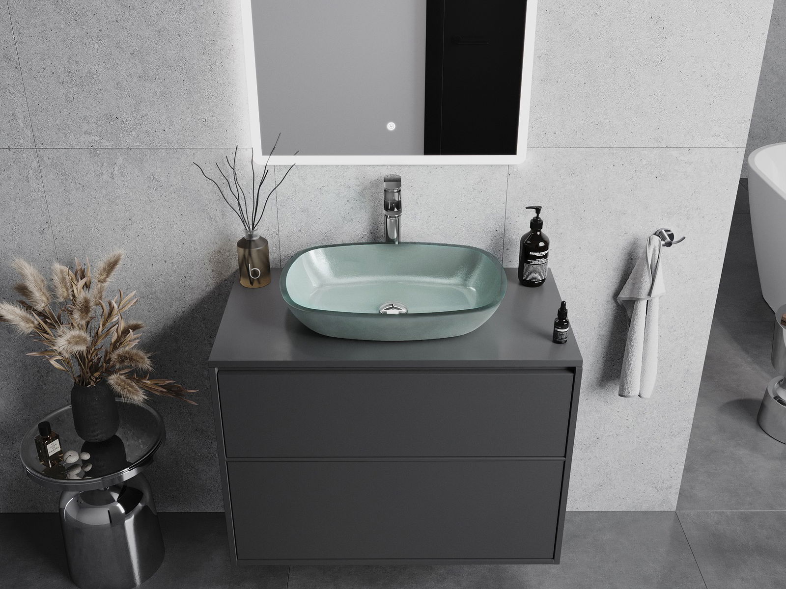 Mexen Araks γυάλινος επιτραπέζιος νιπτήρας 54 x 39 cm, ασημί - 24155411