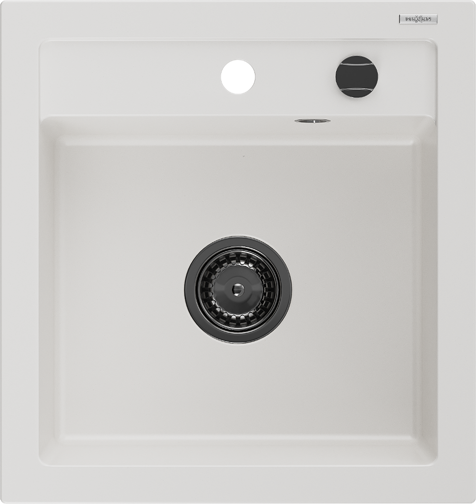 Mexen Vito νεροχύτης γρανίτης μονού θαλάμου 520 x 490 mm, λευκός, σιφόνι μαύρο