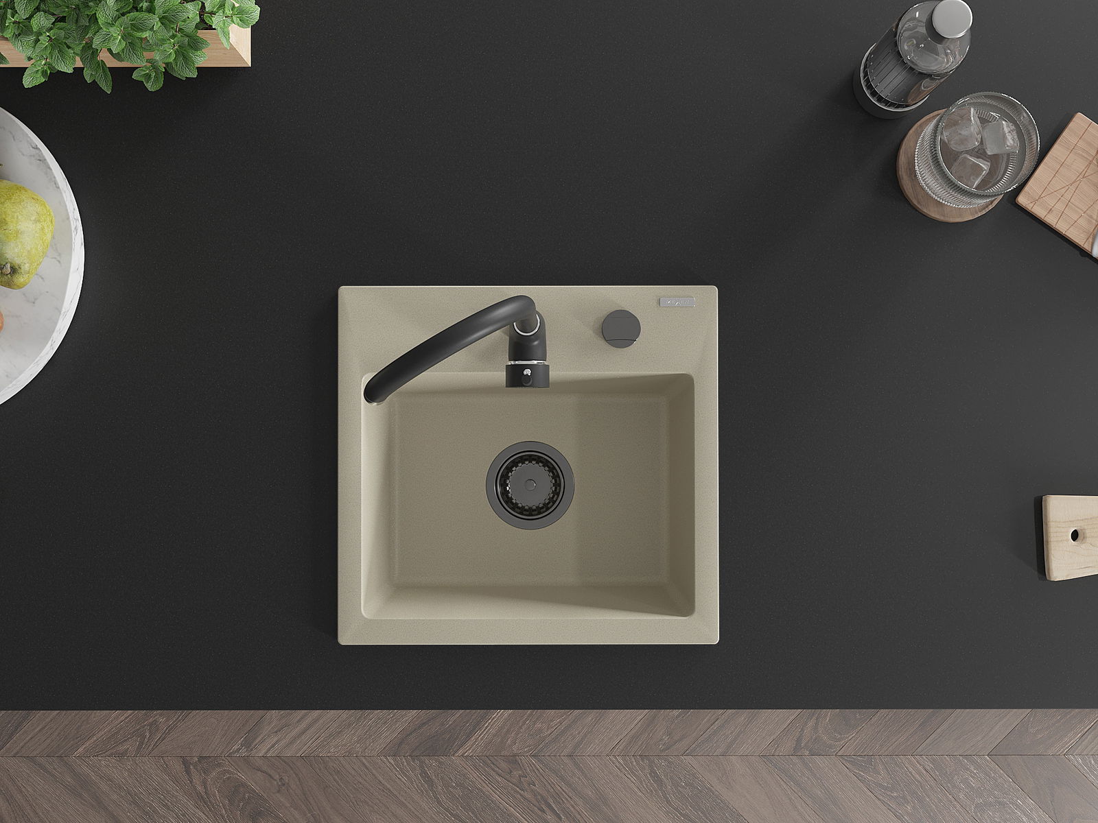 Mexen Milo νεροχύτης γρανίτης 1-διαμερισμάτων 435 x 410 mm, μπεζ, σιφόνι μαύρο