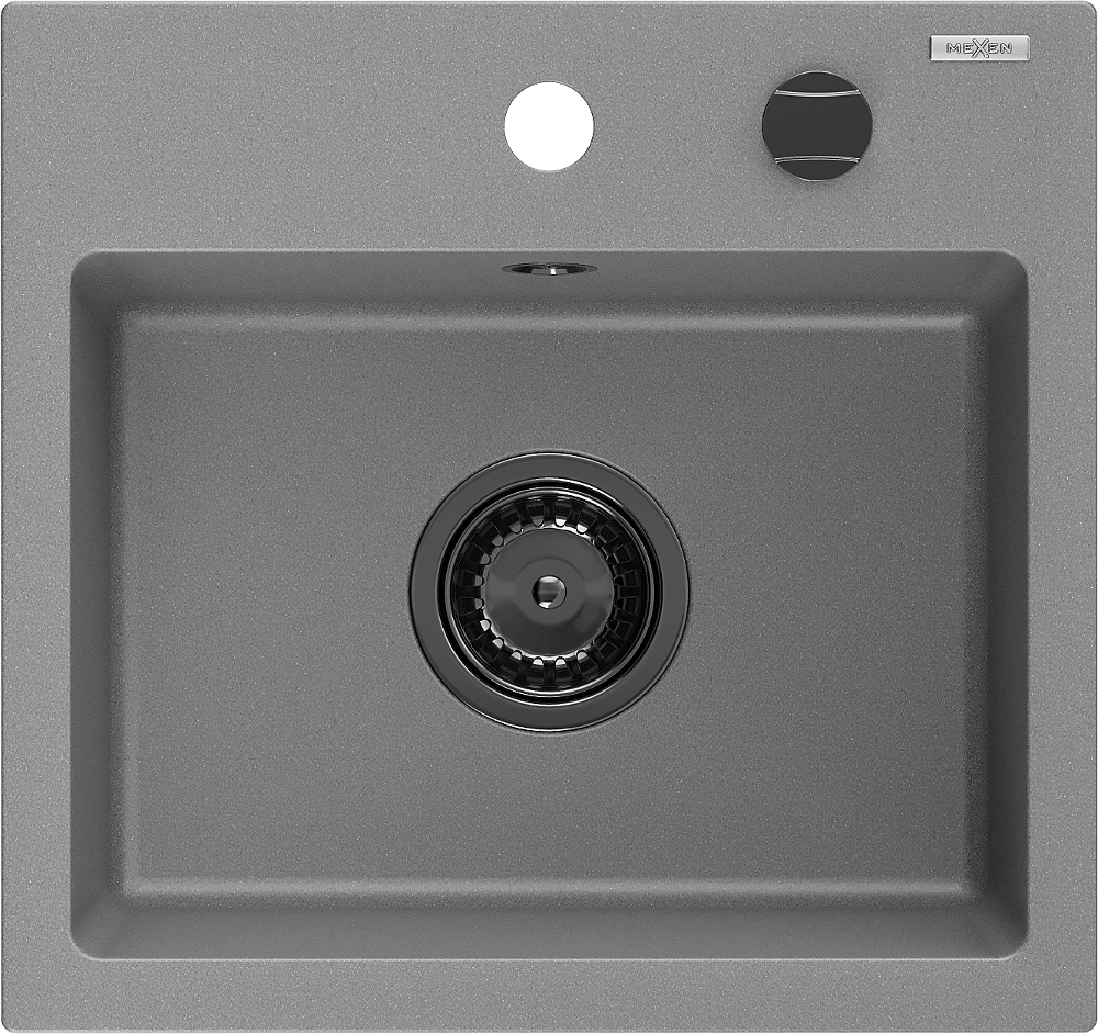 Mexen Milo νεροχύτης γρανίτης 1 θάλαμος 435 x 410 mm, γκρι, μαύρο σιφόνι