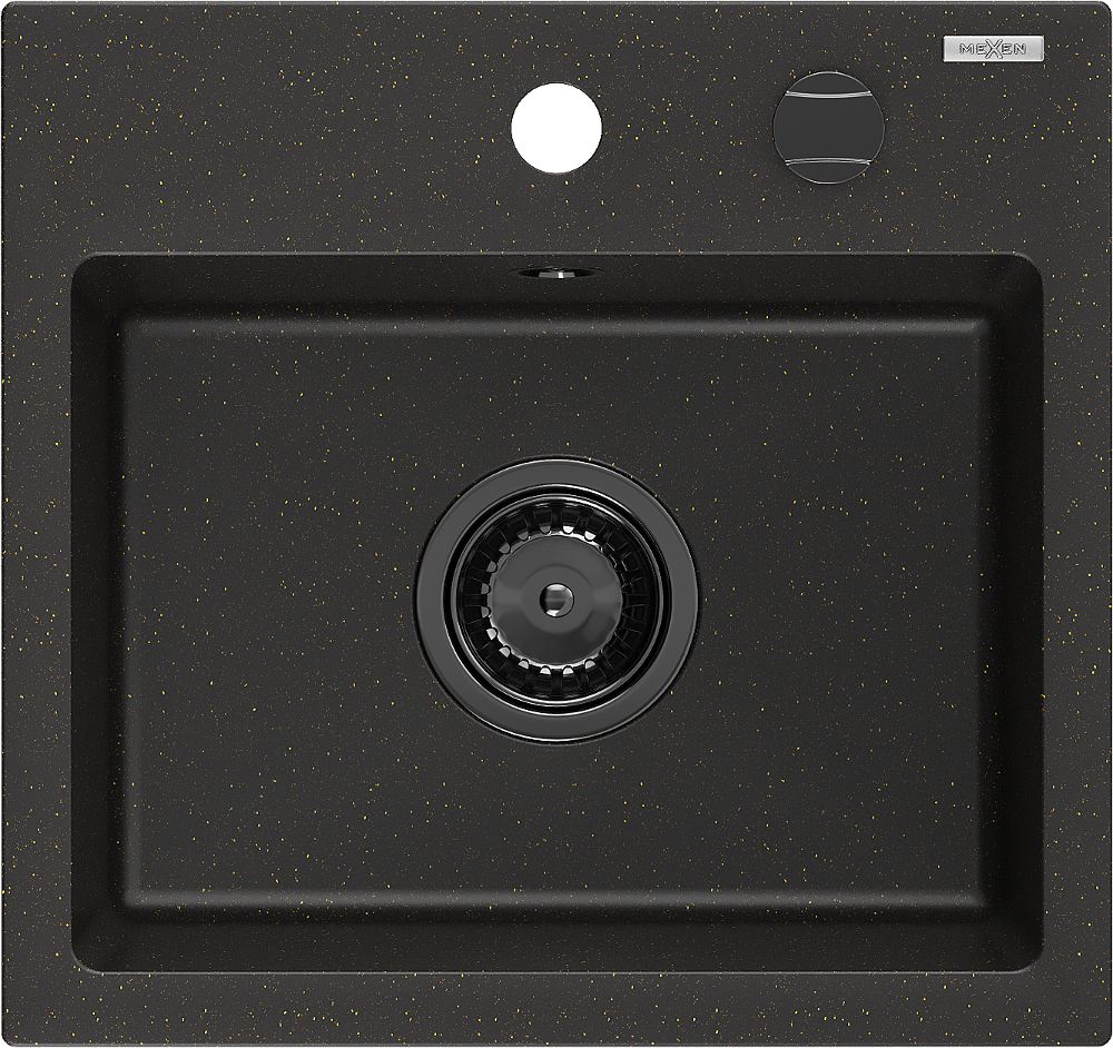 Mexen Milo νεροχύτης γρανίτης 1-θέσεως 435 x 410 mm, μαύρο/χρυσό μεταλλικό,