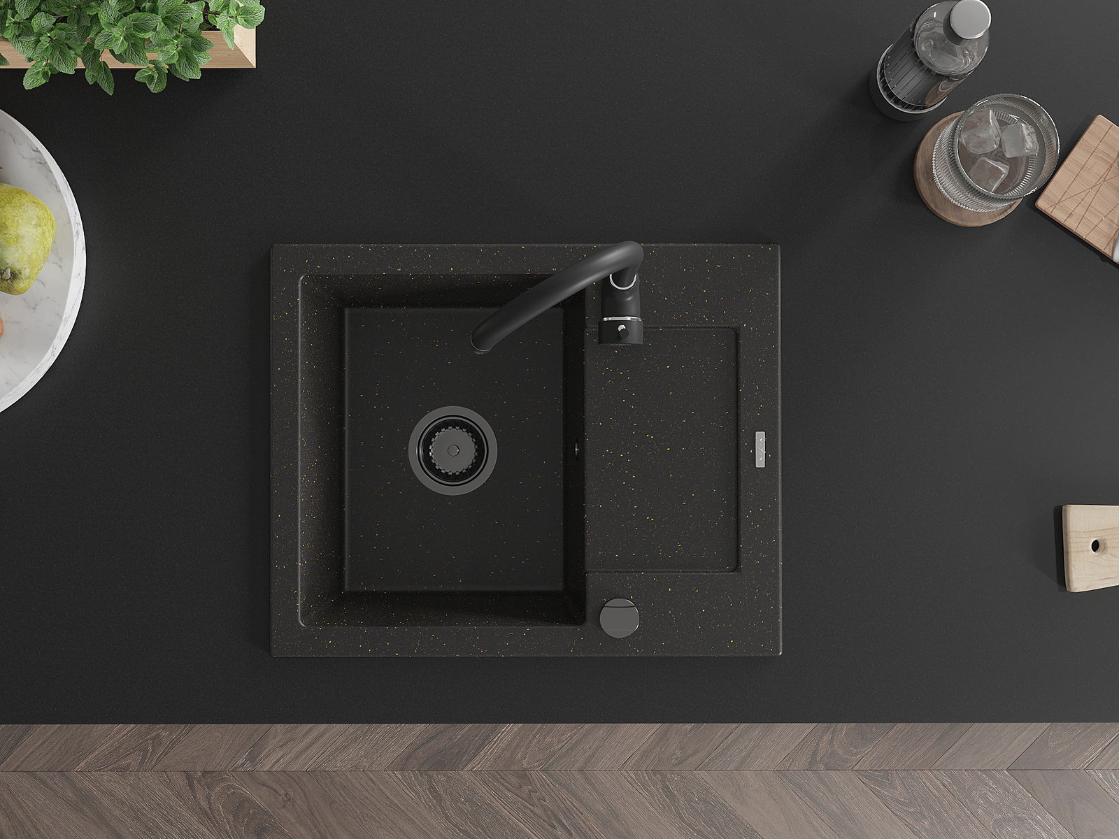 Ο νεροχύτης κατασκευάστηκε από υψηλής ποιότητας γρανίτη. Αποτελεί μια κομψή, και κυρίως πρακτική προσθήκη για κάθε κουζίνα, ανεξάρτητα από το στυλ της. Η υψηλή ποιότητα και η αντοχή του γρανίτη εξασφαλίζουν πολυετή χρήση.