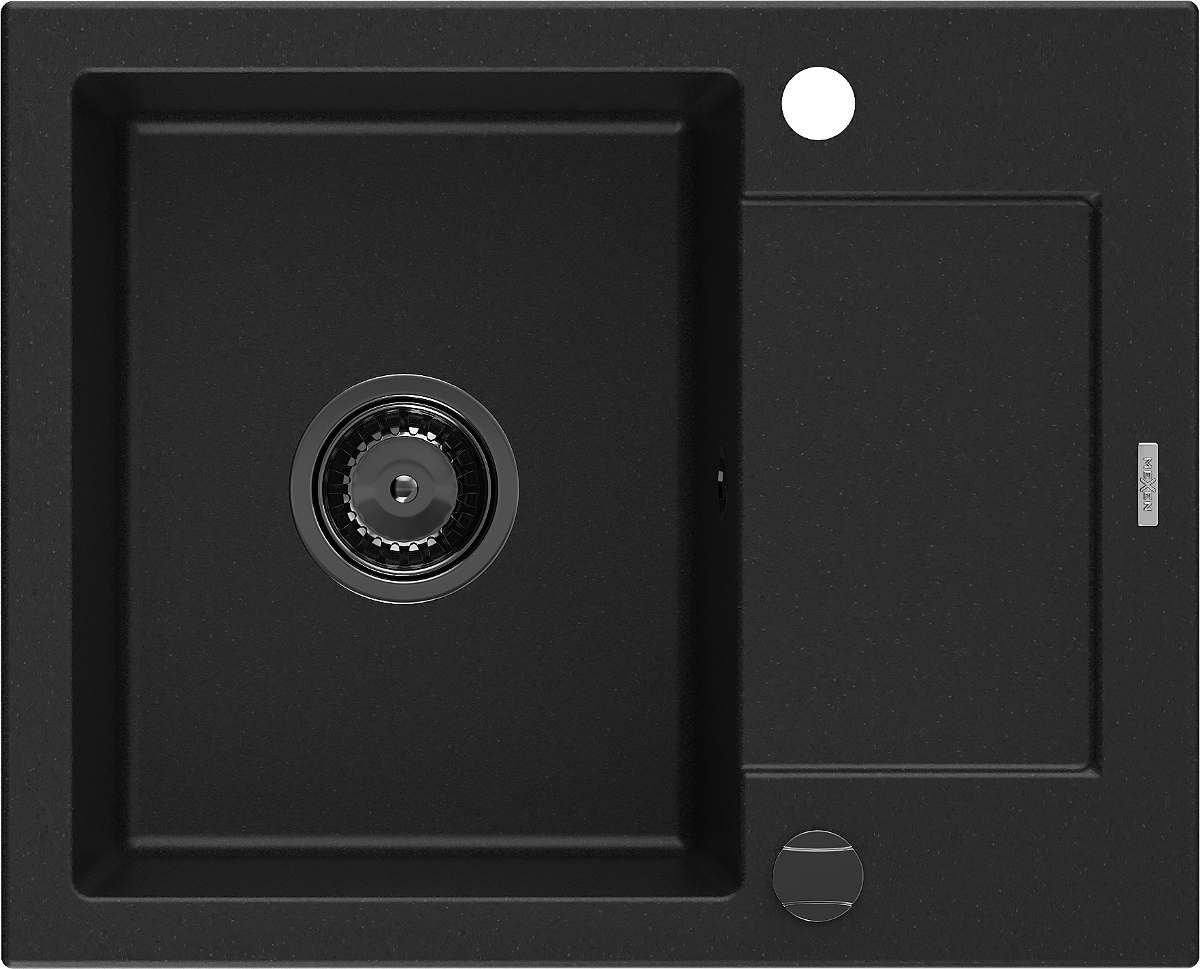 Mexen Enzo νεροχύτης γρανίτης 1-θάλαμος με αποστραγγίστρα 576 x 465 mm, μαύρο,