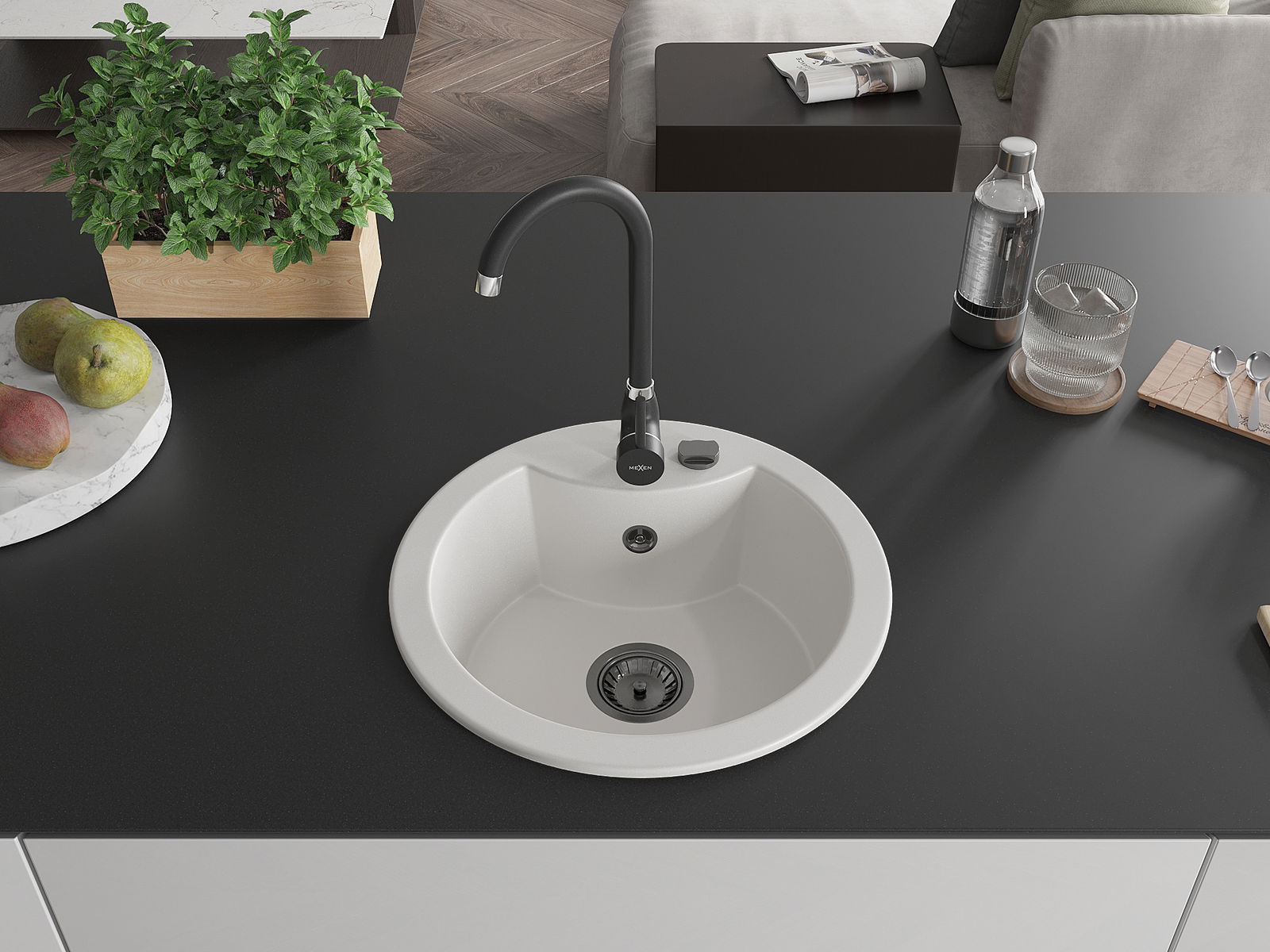 Mexen Diego νεροχύτης γρανίτης 1-θάλαμος 488 x 480 mm, λευκός, σιφόνι μαύρο