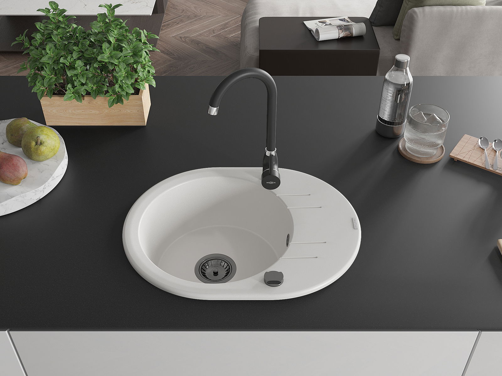 Mexen Kevin νεροχύτης γρανίτης 1-θαλάμου με αποστραγγιστήριο 586 x 458 mm,
