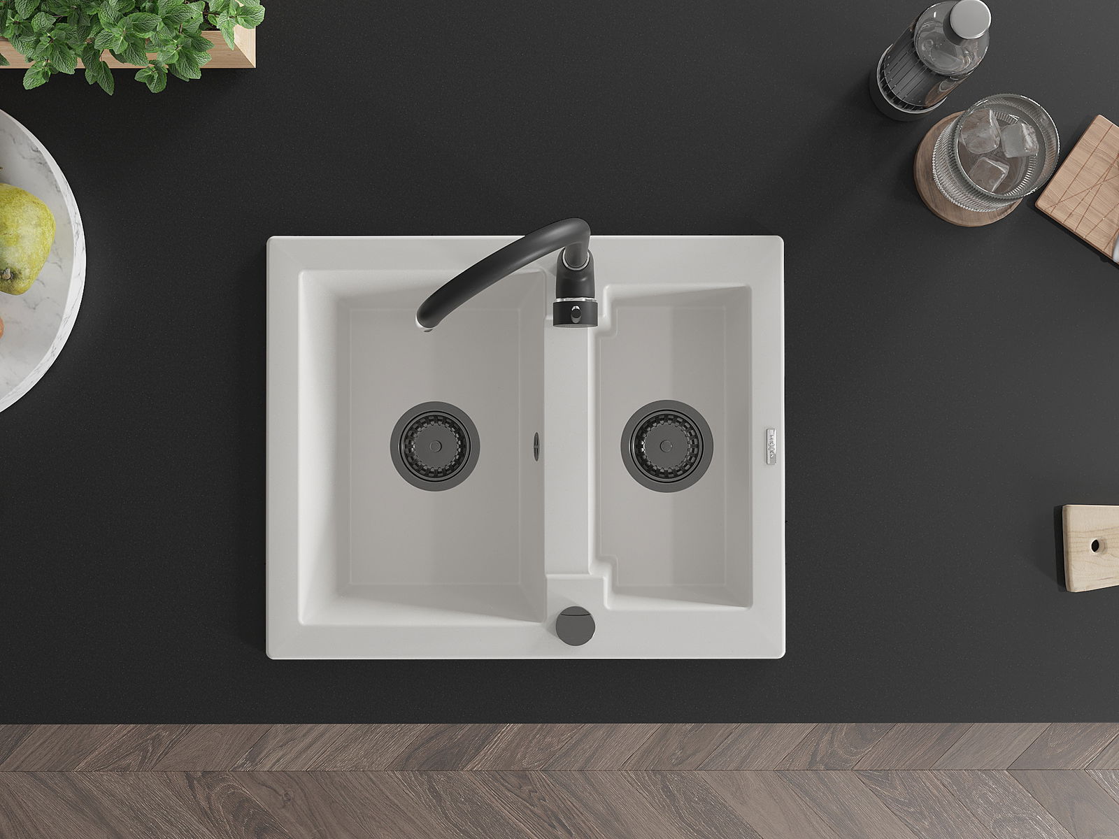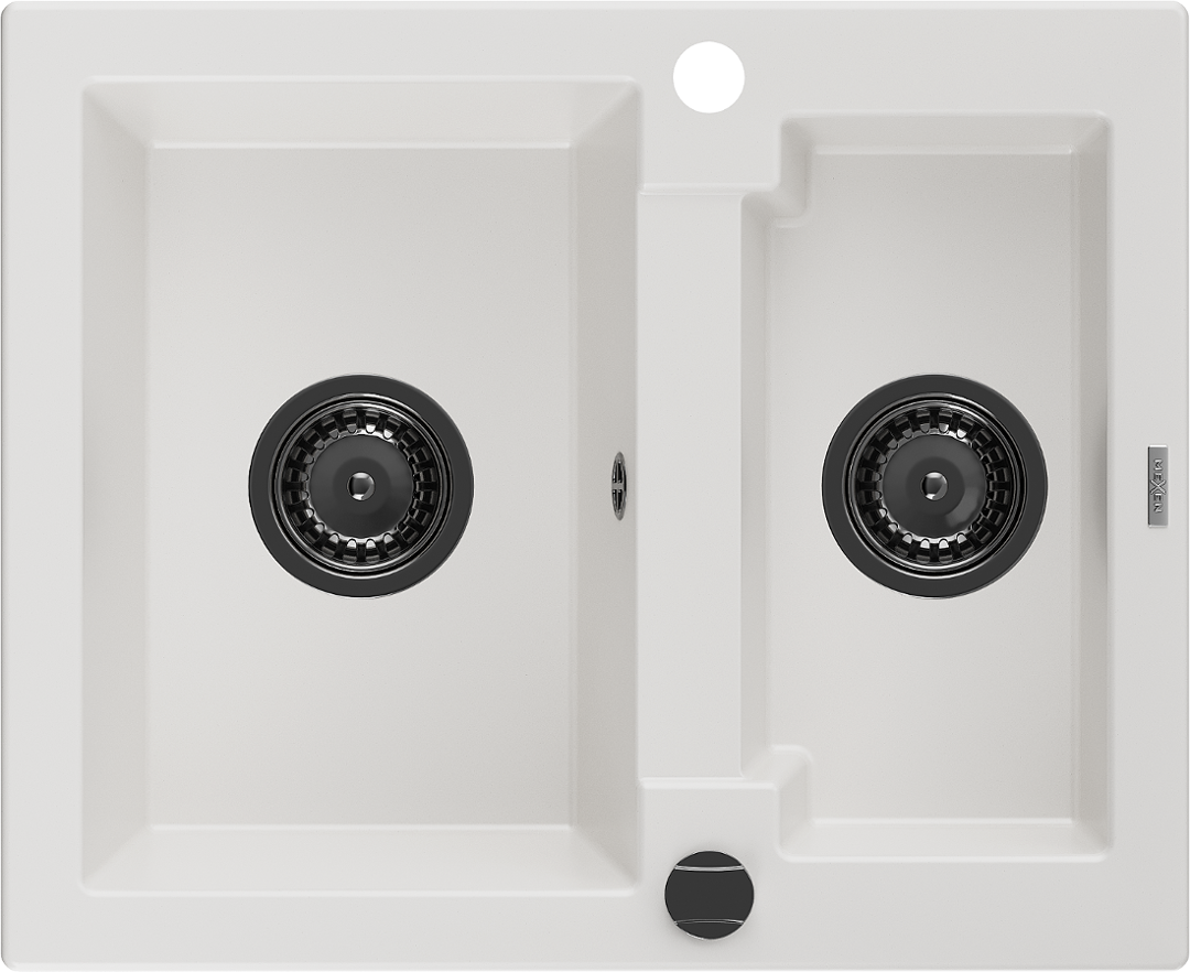 Mexen Carlos νεροχύτης γρανίτη 1,5 θαλάμων 582 x 475 mm, λευκός, σιφόνι μαύρο