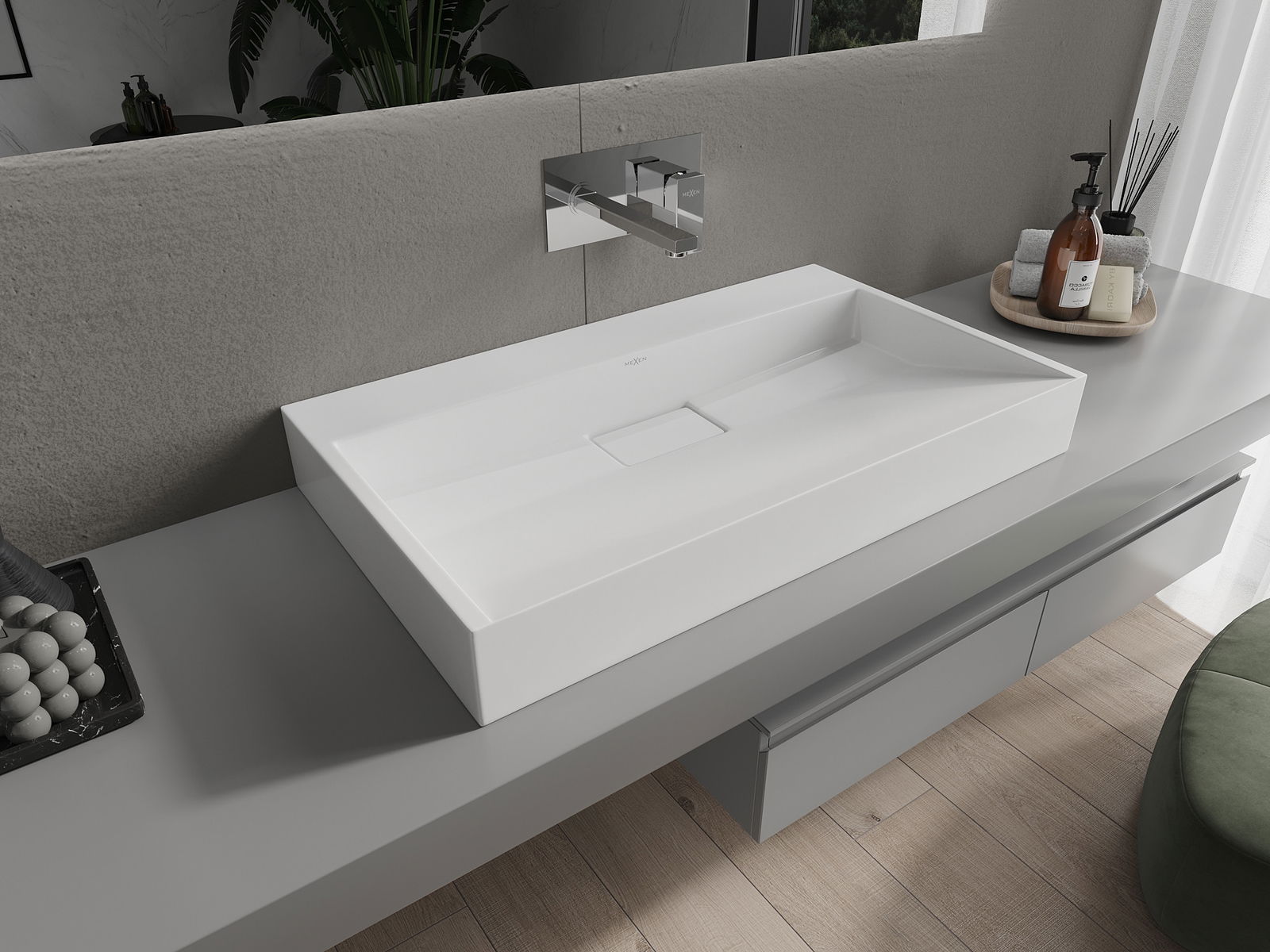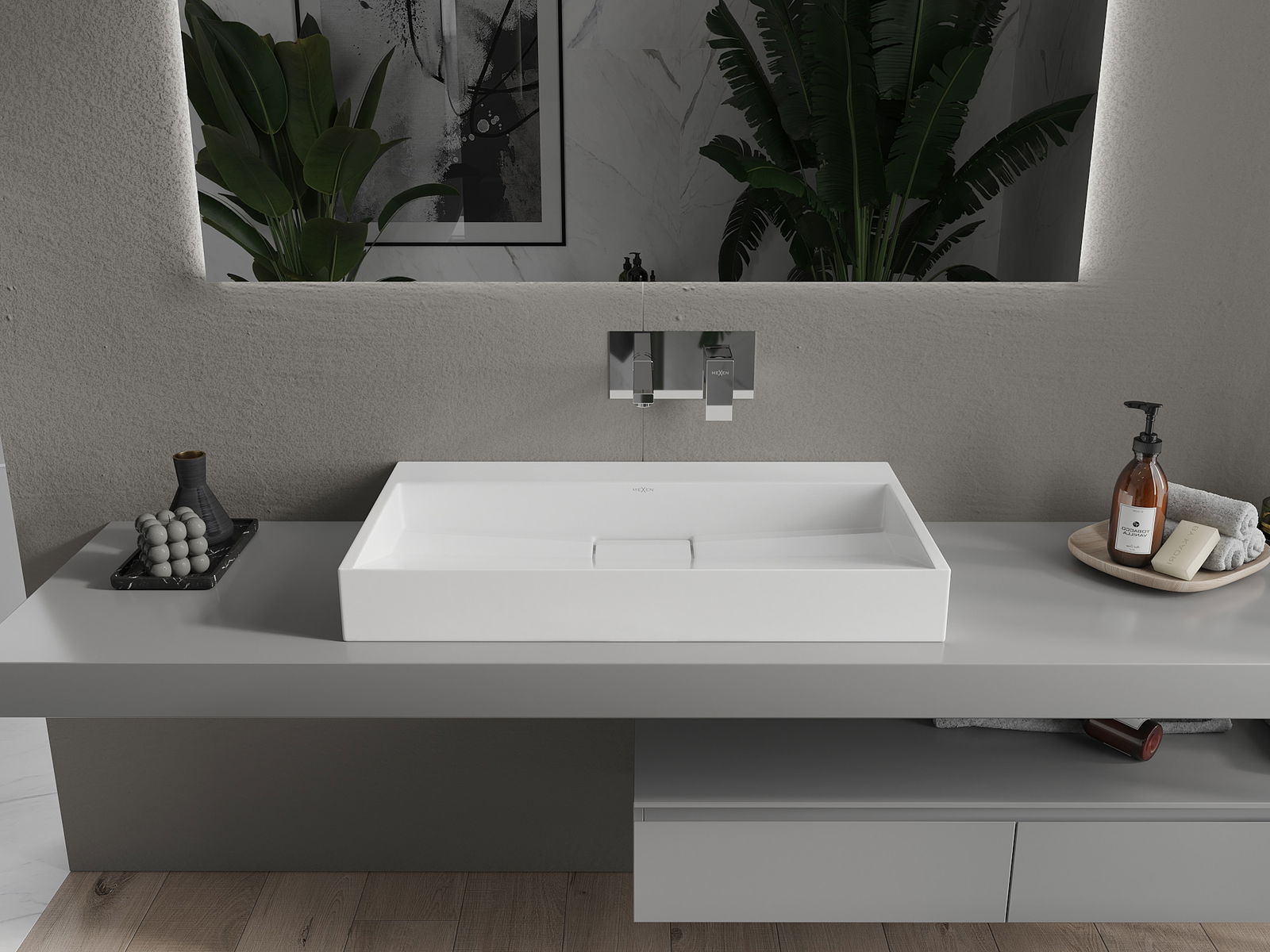 Ο επιτραπέζιος νιπτήρας από κογκλομεράτο με διαστάσεις 80 x 46 cm, σε λευκό χρώμα, είναι η ιδανική λύση για σύγχρονα μπάνια. Χάρη στο ορθογώνιο σχήμα του και την εξειδικευμένη του κατασκευή, το προϊόν εναρμονίζεται τέλεια με τις τάσεις του σχεδιασμού, προσφέροντας ταυτόχρονα λειτουργικότητα. Το χαμηλό ύψος 11 cm κάνει τον νιπτήρα άνετο στη χρήση. Το υλικό κογκλομεράτο εξασφαλίζει αντοχή και ευκολία στη συντήρηση. Η απουσία τρυπών για μπαταρίες επιτρέπει μεγαλύτερη ελευθερία στην επιλογή εξαρτημάτων.