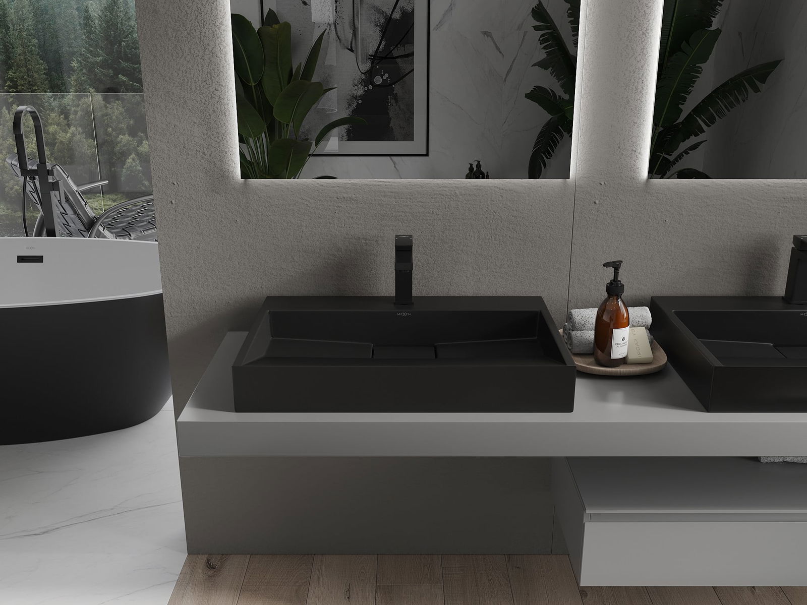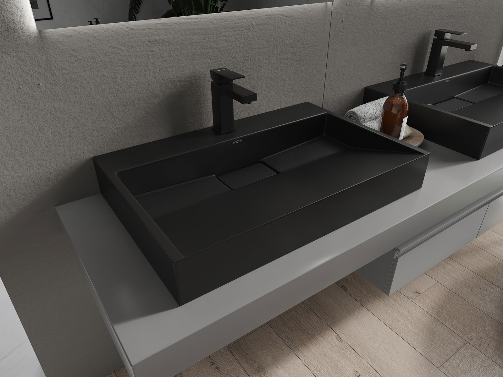 Mexen Ava επιτραπέζιος νιπτήρας από συγκολλημένο υλικό 1/O 70 x 46 cm, μαύρος