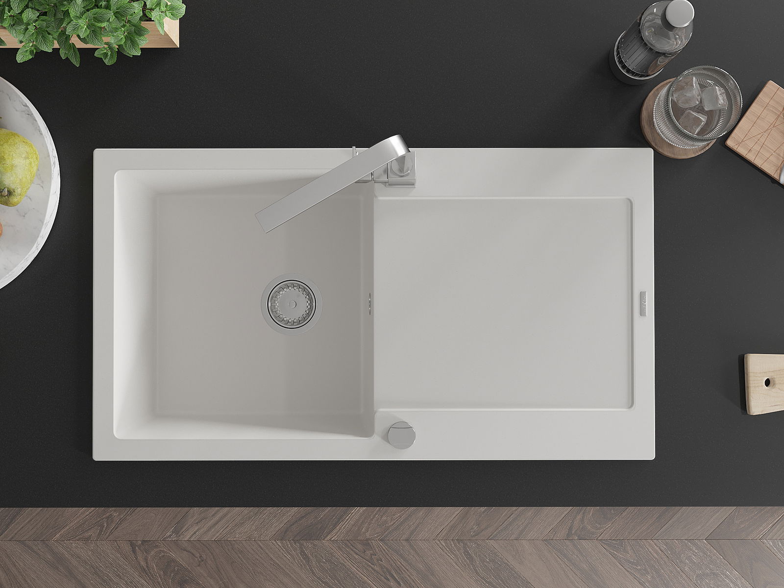 Ο νεροχύτης κατασκευάστηκε από υψηλής ποιότητας γρανίτη. Αποτελεί μια κομψή, και κυρίως πρακτική προσθήκη για κάθε κουζίνα, ανεξάρτητα από το στυλ της. Η υψηλή ποιότητα και η αντοχή του γρανίτη εξασφαλίζουν πολυετή χρήση.