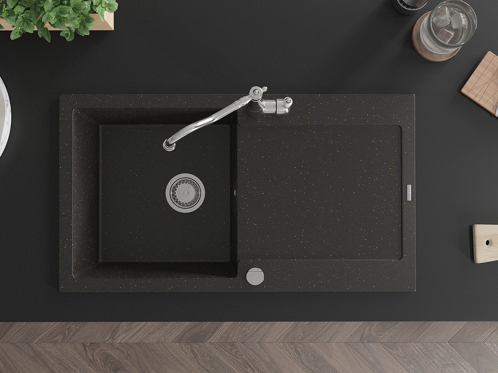 Ο νεροχύτης κατασκευάστηκε από υψηλής ποιότητας γρανίτη. Αποτελεί μια κομψή, και κυρίως πρακτική προσθήκη για κάθε κουζίνα, ανεξάρτητα από το στυλ της. Η υψηλή ποιότητα και η αντοχή του γρανίτη εξασφαλίζουν πολυετή χρήση.