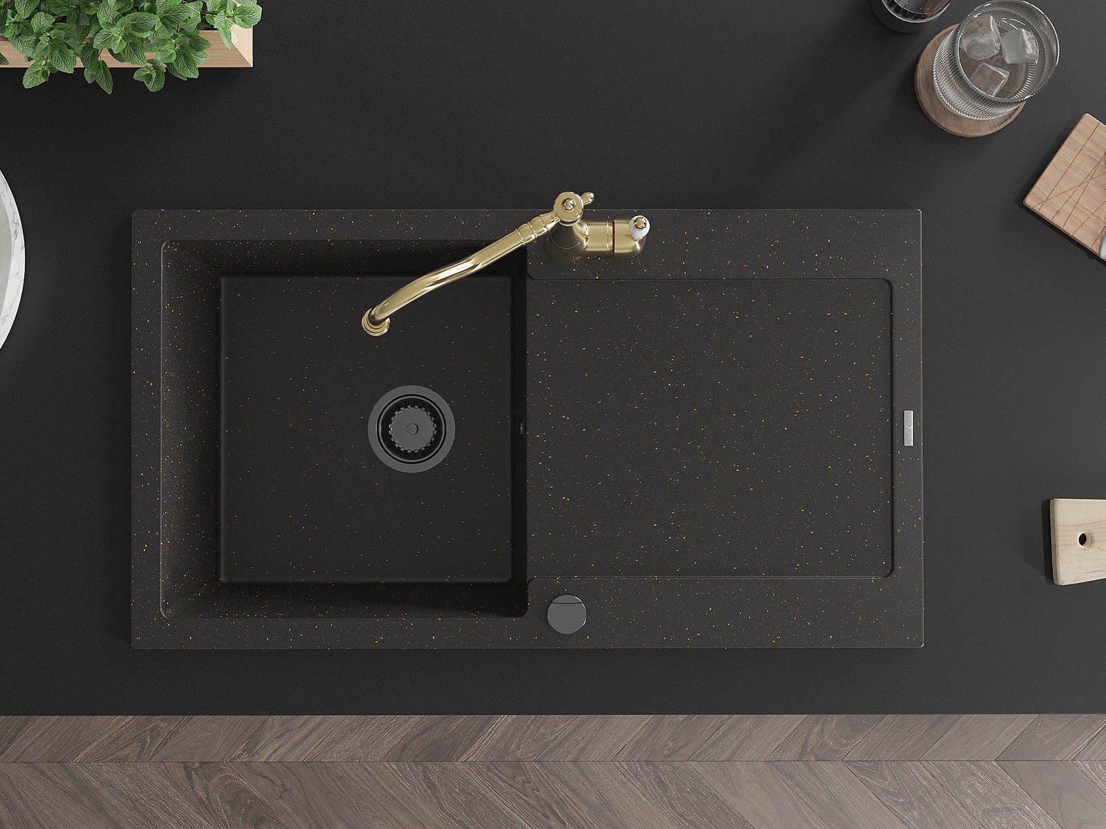 Mexen Leo νεροχύτης γρανίτης 1 θάλαμο με στραγγιστήριο και μπαταρία