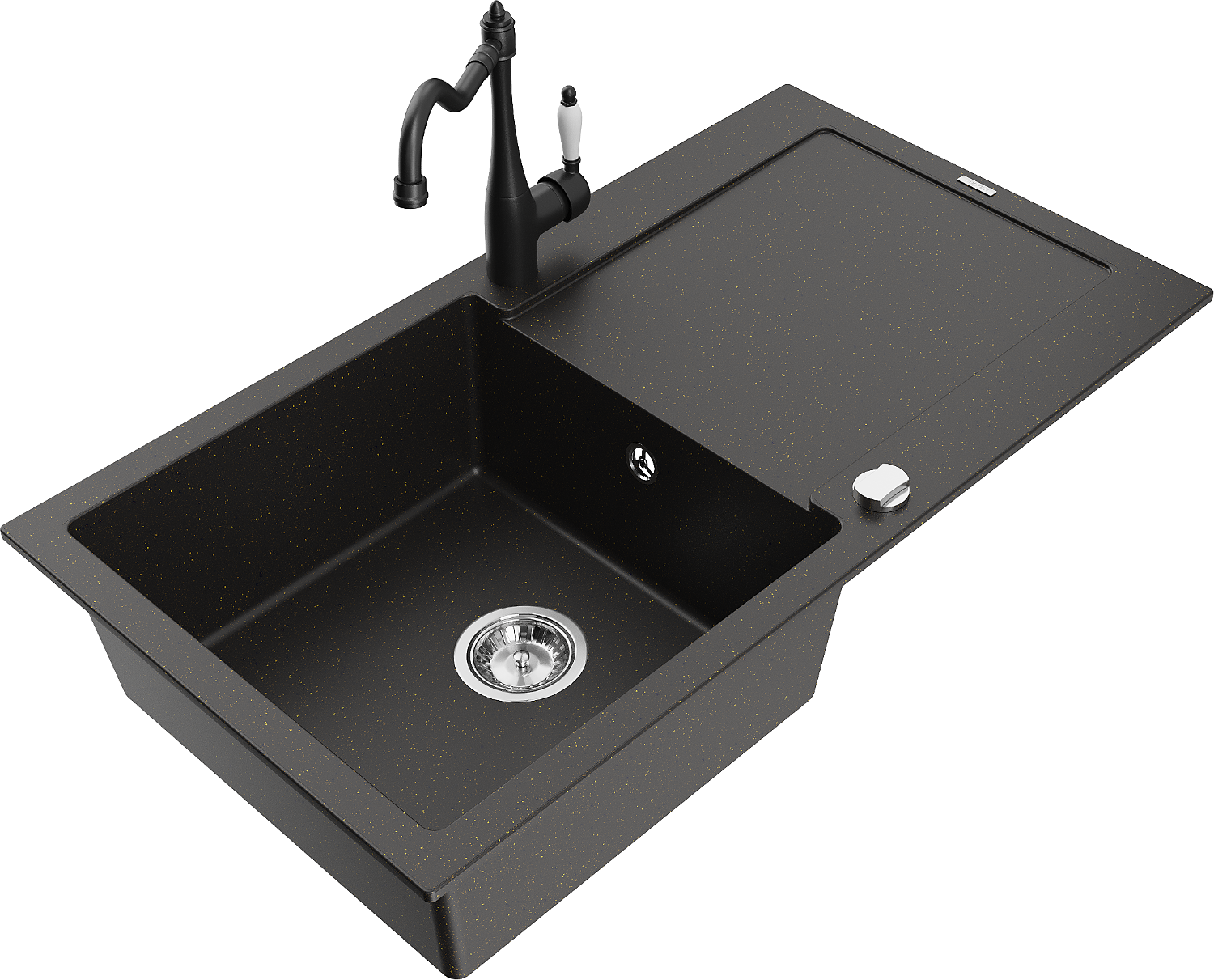 Mexen Leo νεροχύτης γρανίτη μονής λεκάνης με στραγγιστήρι και μπαταρία