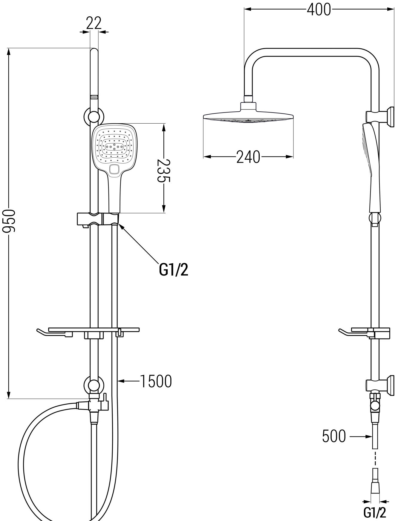 Μέγεθος κεφαλής ντους: ø240 mm