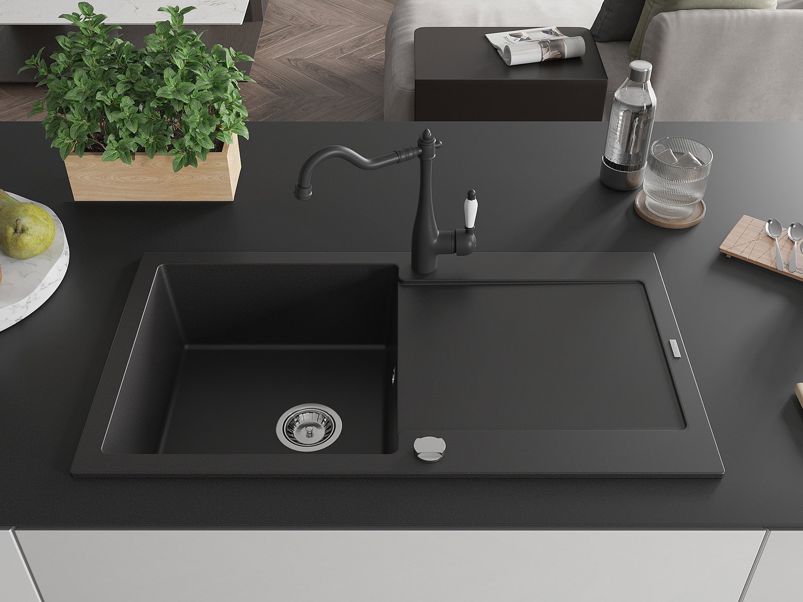 Ο νεροχύτης κατασκευάστηκε από υψηλής ποιότητας γρανίτη. Αποτελεί μια κομψή, και κυρίως πρακτική προσθήκη για κάθε κουζίνα, ανεξάρτητα από το στυλ της. Η υψηλή ποιότητα και η αντοχή του γρανίτη εξασφαλίζουν πολυετή χρήση.