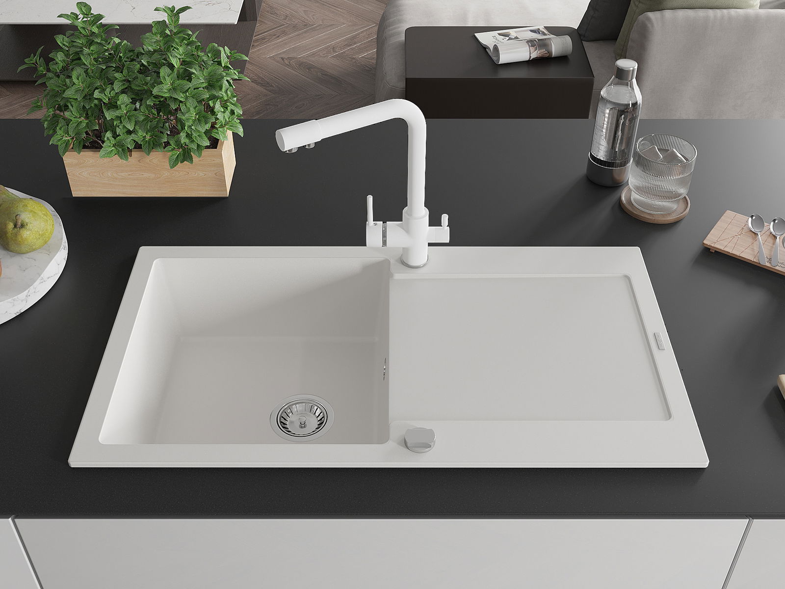 Mexen Leo νεροχύτης γρανίτης 1-θάλαμος με στραγγιστή και μπαταρία