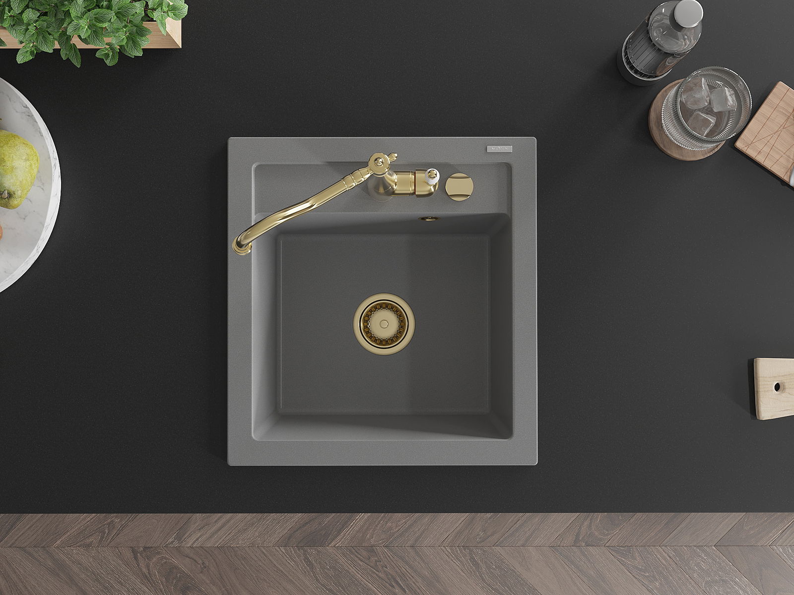 Mexen Vito νεροχύτης γρανίτη 1-θάλαμου με μπαταρία κουζίνας Carla, γκρι