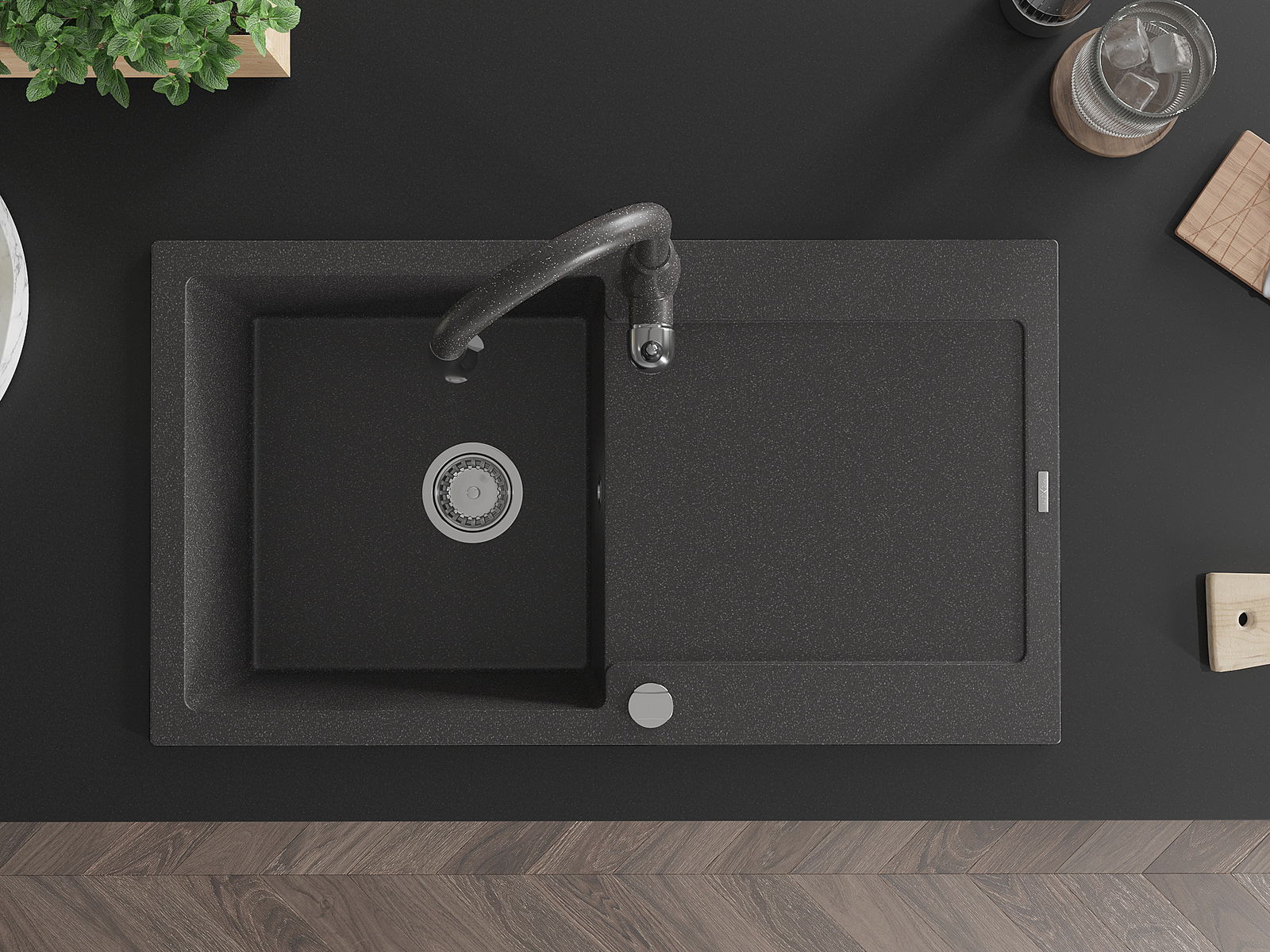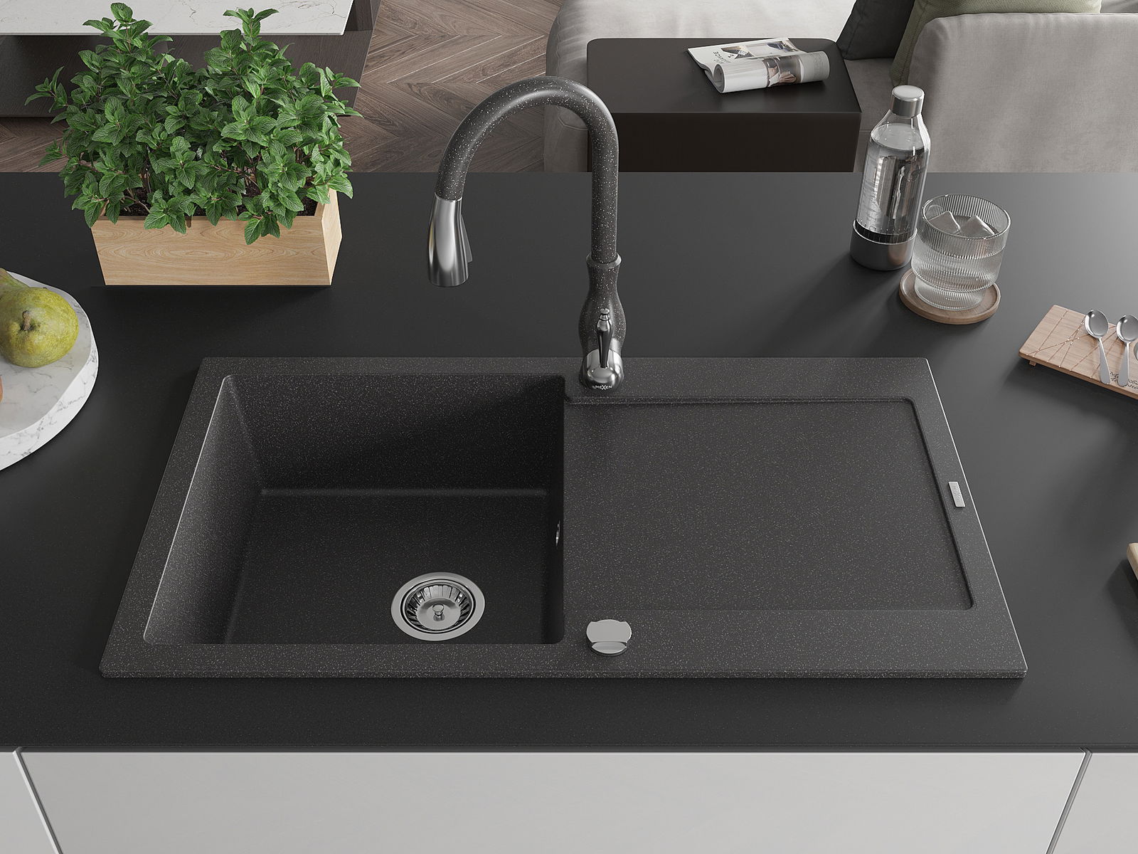 Mexen Leo νεροχύτης γρανίτης μονού θαλάμου με επιφάνεια αποστράγγισης