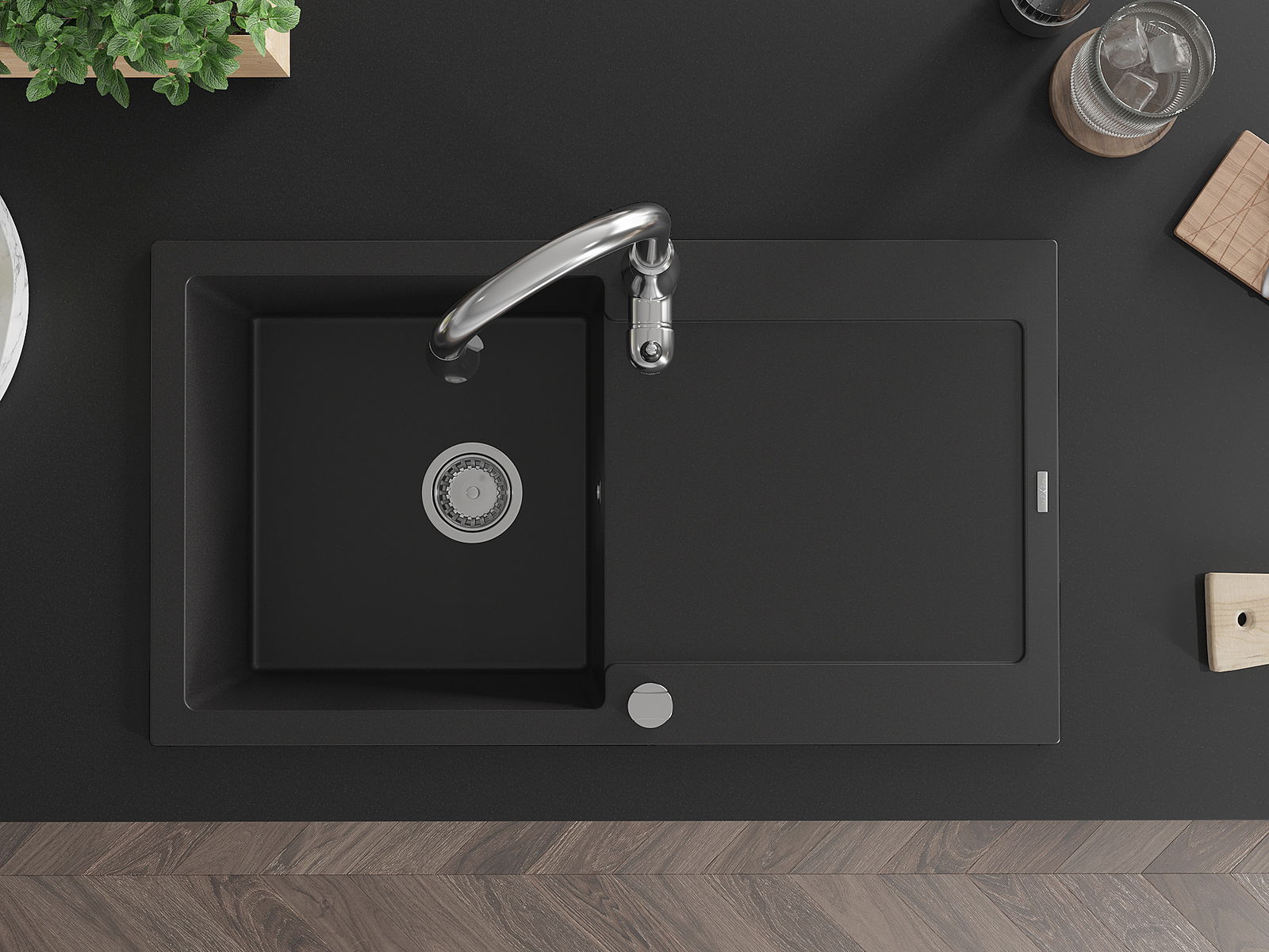 Ο νεροχύτης κατασκευάστηκε από υψηλής ποιότητας γρανίτη. Αποτελεί μια κομψή, και κυρίως πρακτική προσθήκη για κάθε κουζίνα, ανεξάρτητα από το στυλ της. Η υψηλή ποιότητα και η αντοχή του γρανίτη εξασφαλίζουν πολυετή χρήση.