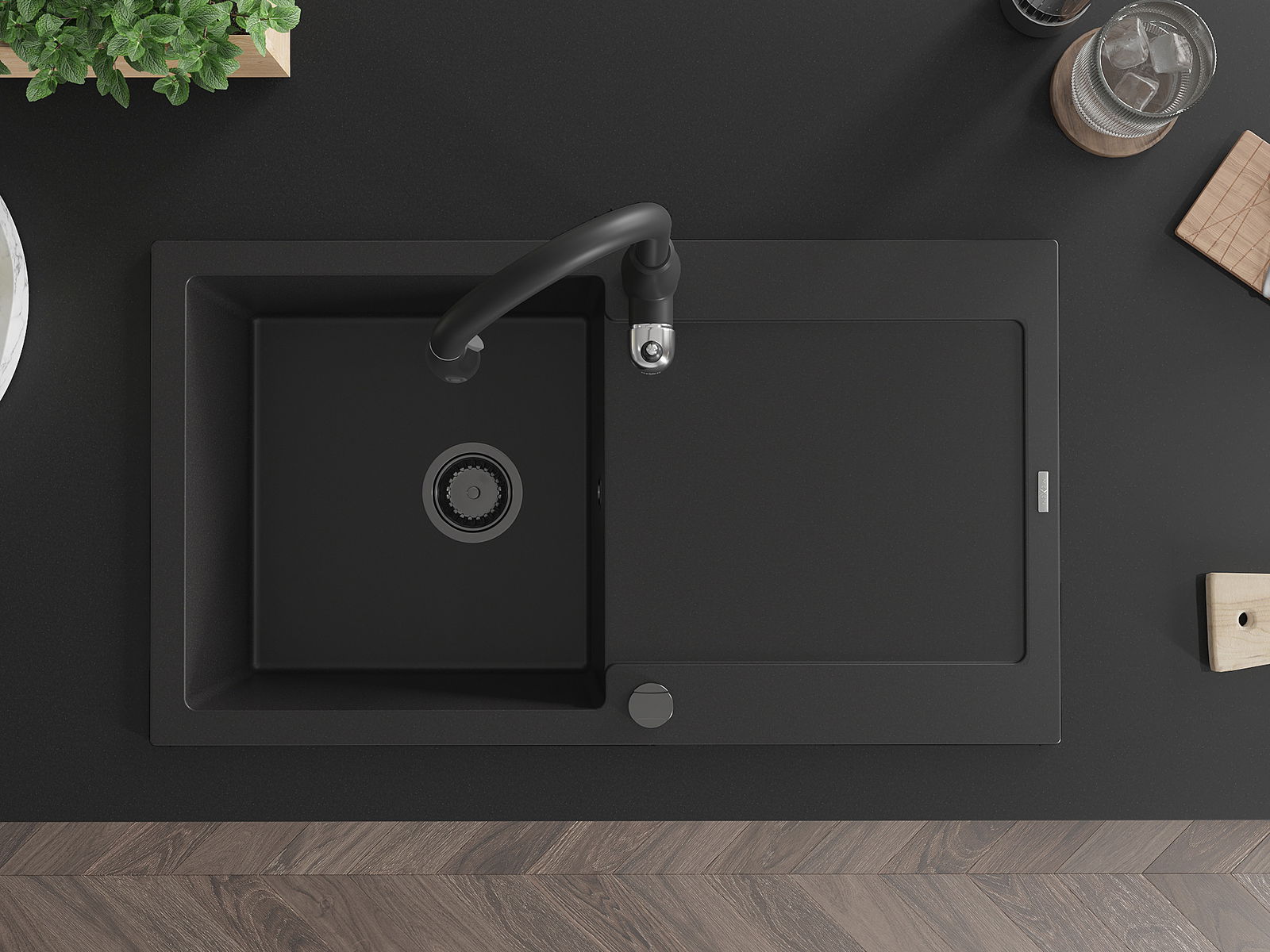 Mexen Leo νεροχύτης γρανίτης μονής λεκάνης με αποστραγγιστήρα και
