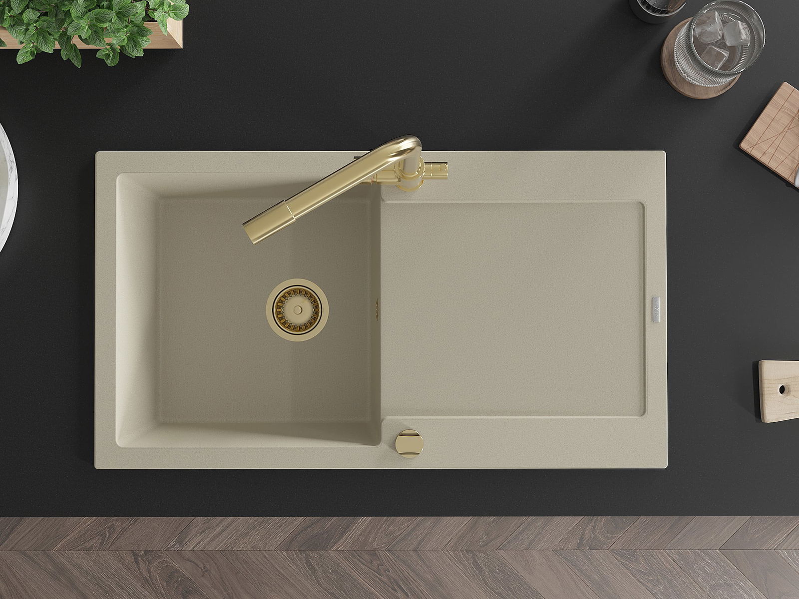Mexen Leo νεροχύτης από γρανίτη, μονόχωρη με στραγγιστήρι και κουζίνα