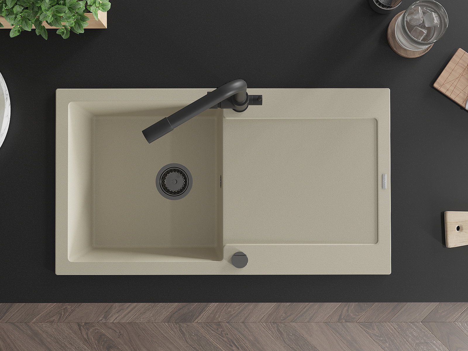 Ο νεροχύτης κατασκευάστηκε από υψηλής ποιότητας γρανίτη. Αποτελεί μια κομψή, και κυρίως πρακτική προσθήκη για κάθε κουζίνα, ανεξάρτητα από το στυλ της. Η υψηλή ποιότητα και η αντοχή του γρανίτη εξασφαλίζουν πολυετή χρήση.