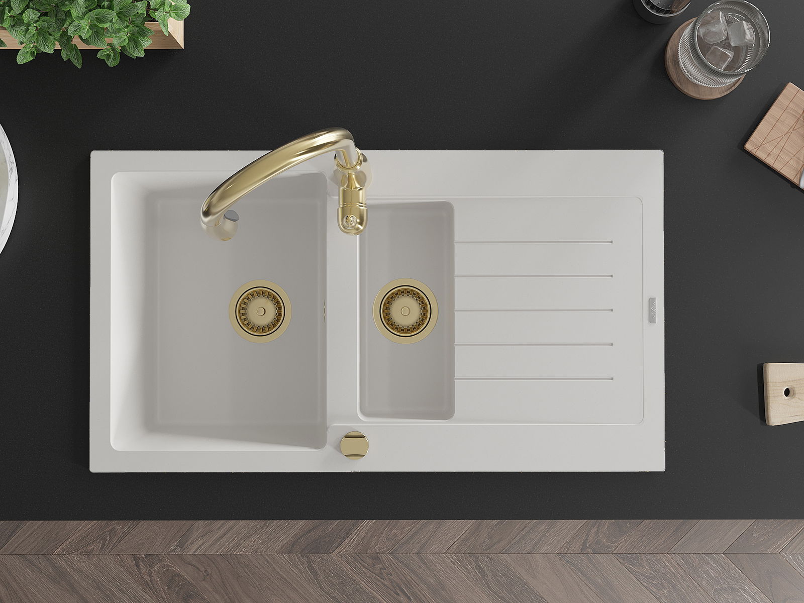 Mexen Matias νεροχύτης γρανίτης 1,5 Θάλαμο με αποστράγγιση και μπαταρία