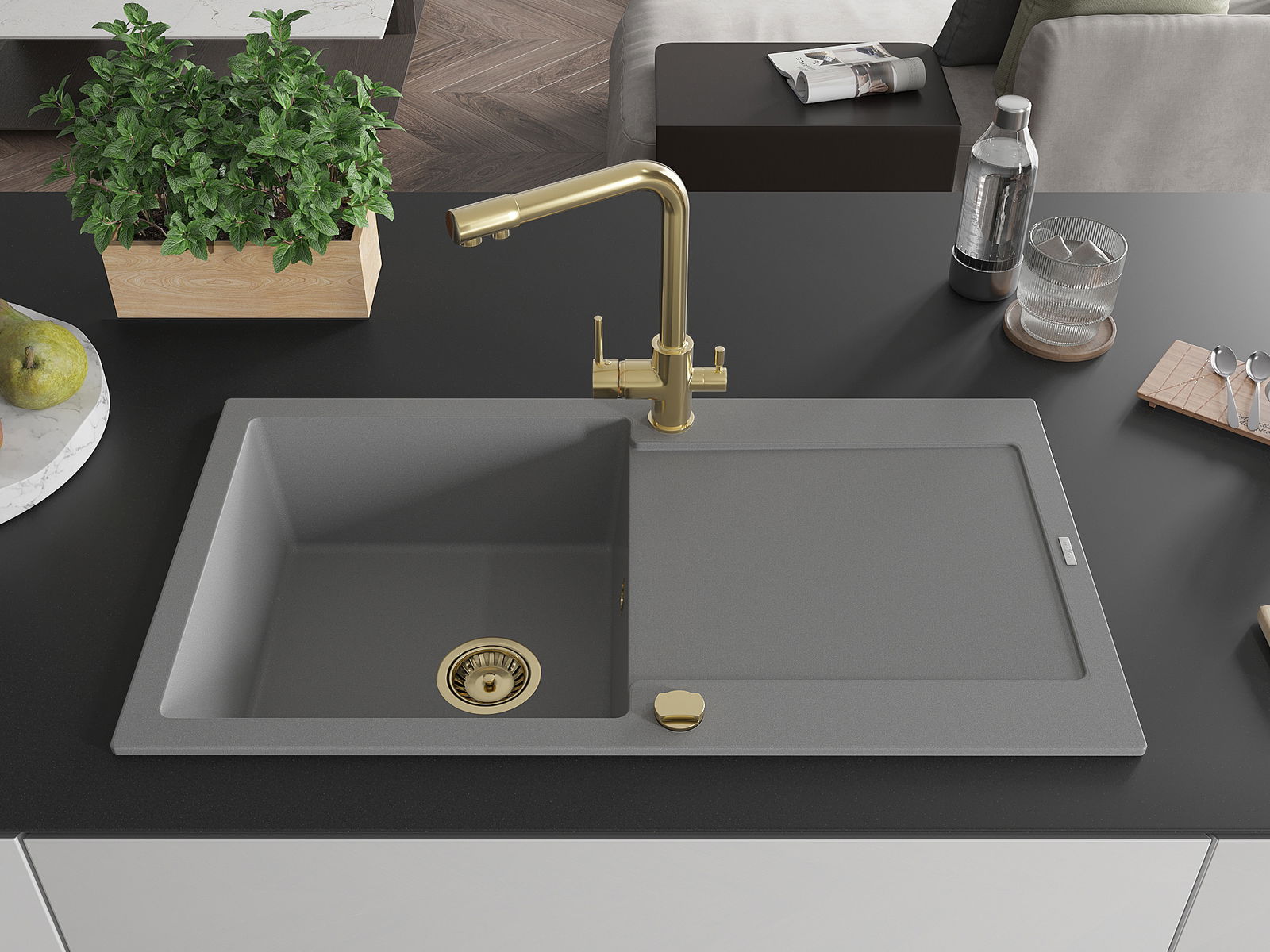 Mexen Leo νεροχύτης γρανίτης 1-δοχείο με στραγγιστήρι και μπαταρία
