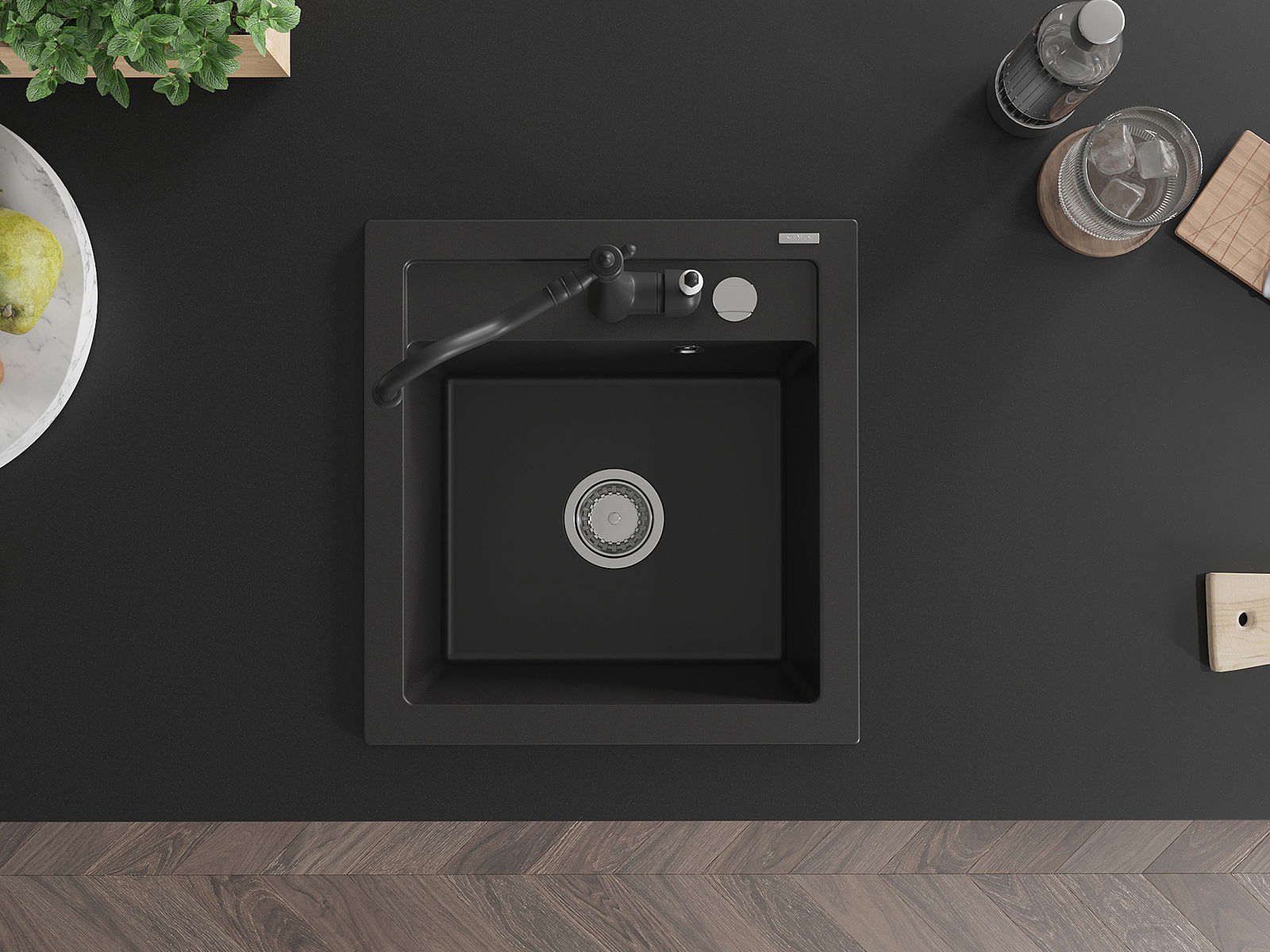Mexen Vito νεροχύτης γρανίτης 1-διαμερισμάτων με μπαταρία κουζίνας Carla,