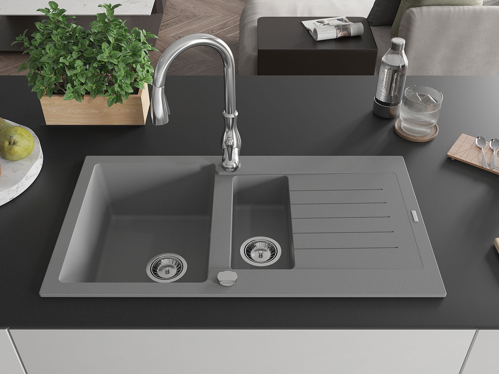 Mexen Matias νεροχύτης γρανίτης 1,5 θαλάμων με αποστράγγιση και μπαταρία