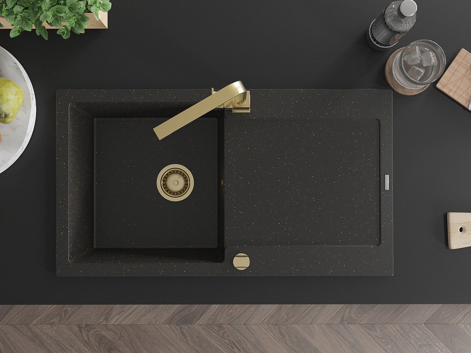Mexen Leo νεροχύτης γρανίτης με 1 θάλαμο και στραγγιστήριο και μπαταρία
