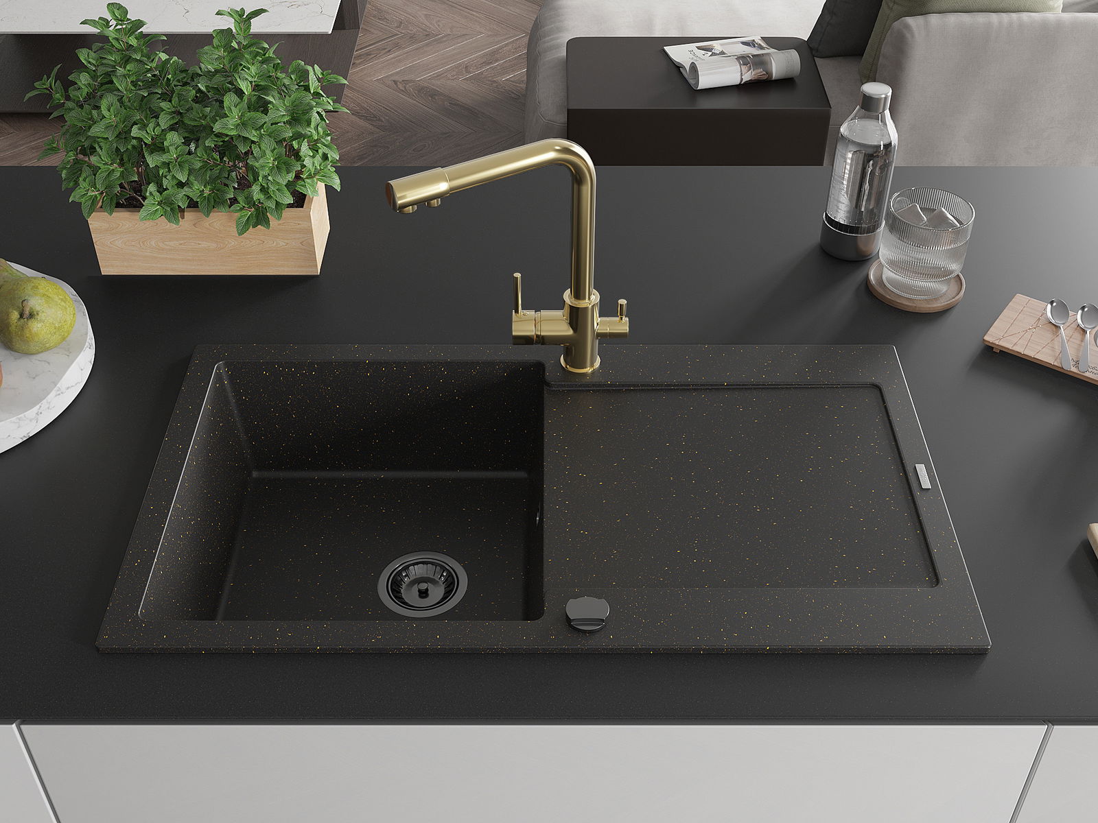Ο νεροχύτης κατασκευάστηκε από υψηλής ποιότητας γρανίτη. Αποτελεί μια κομψή, και κυρίως πρακτική προσθήκη για κάθε κουζίνα, ανεξάρτητα από το στυλ της. Η υψηλή ποιότητα και η αντοχή του γρανίτη εξασφαλίζουν πολυετή χρήση.