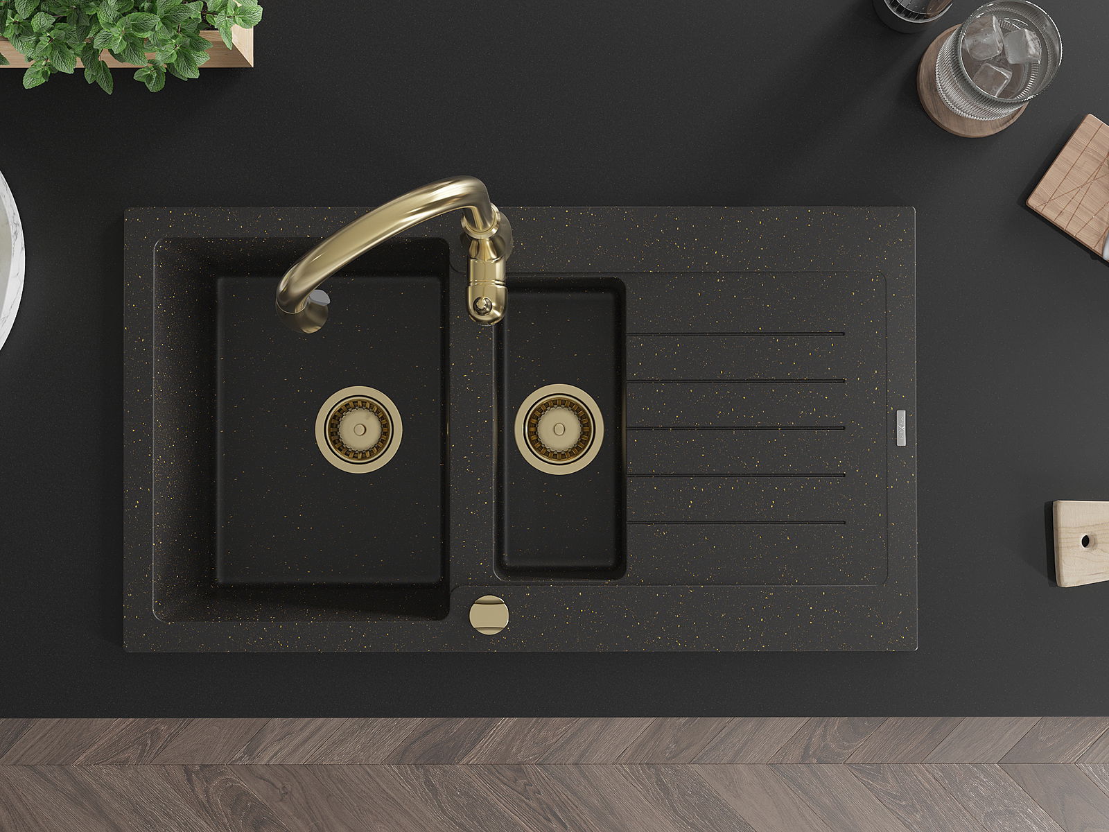Mexen Matias νεροχύτης γρανίτη 1,5-διαμερισμάτων με επιφάνεια αποστράγγισης