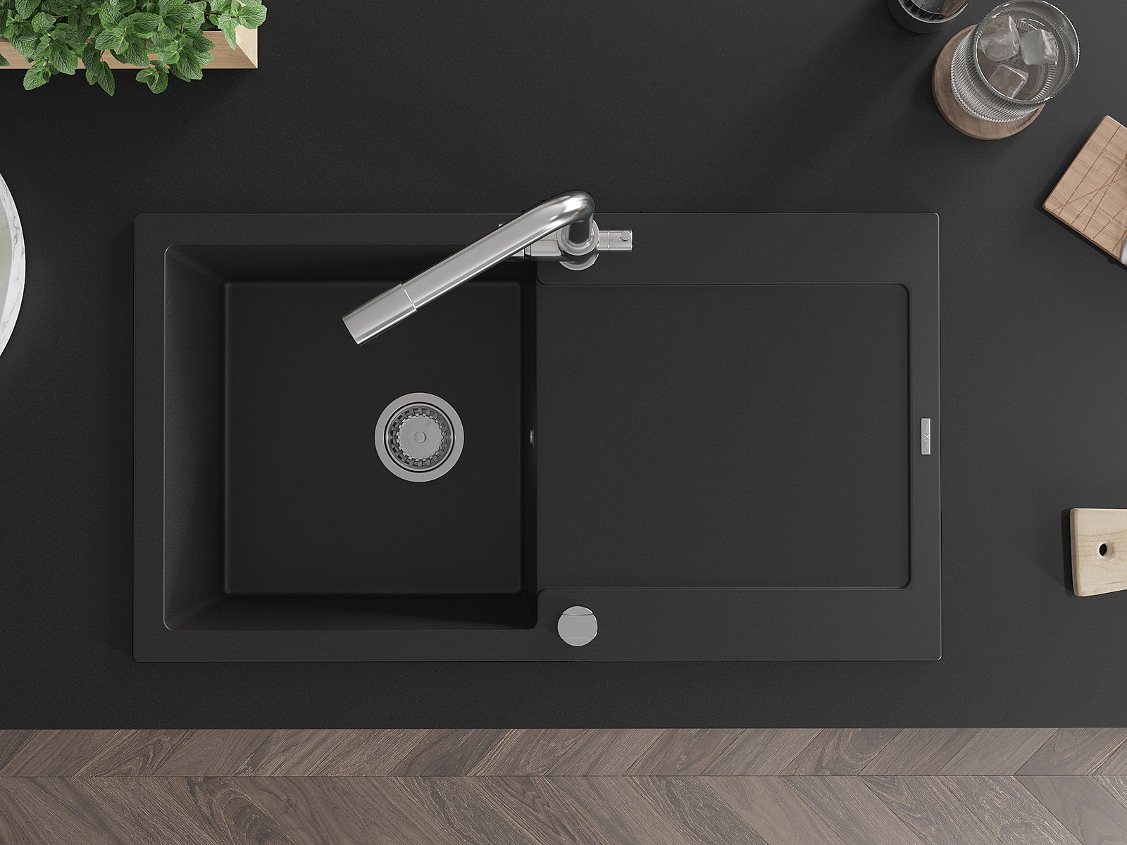 Mexen Leo νεροχύτης γρανίτης 1-θαλάμου με στραγγιστήρα και μπαταρία