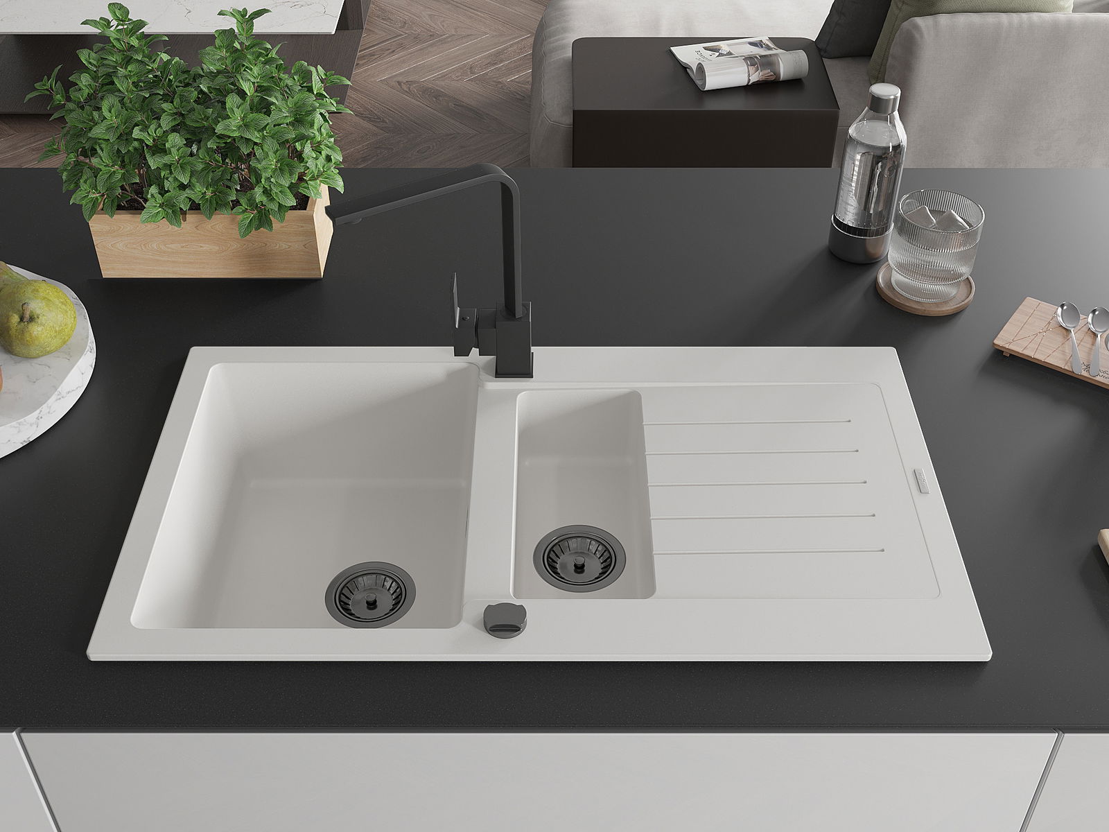 Mexen Matias Νεροχύτης γρανίτης 1,5 λεκάνης με στραγγιστήρι και μπαταρία