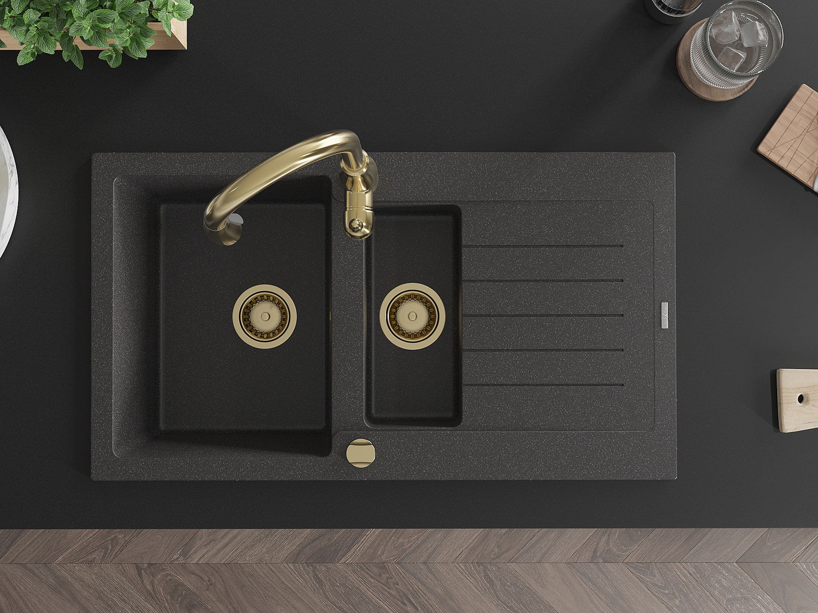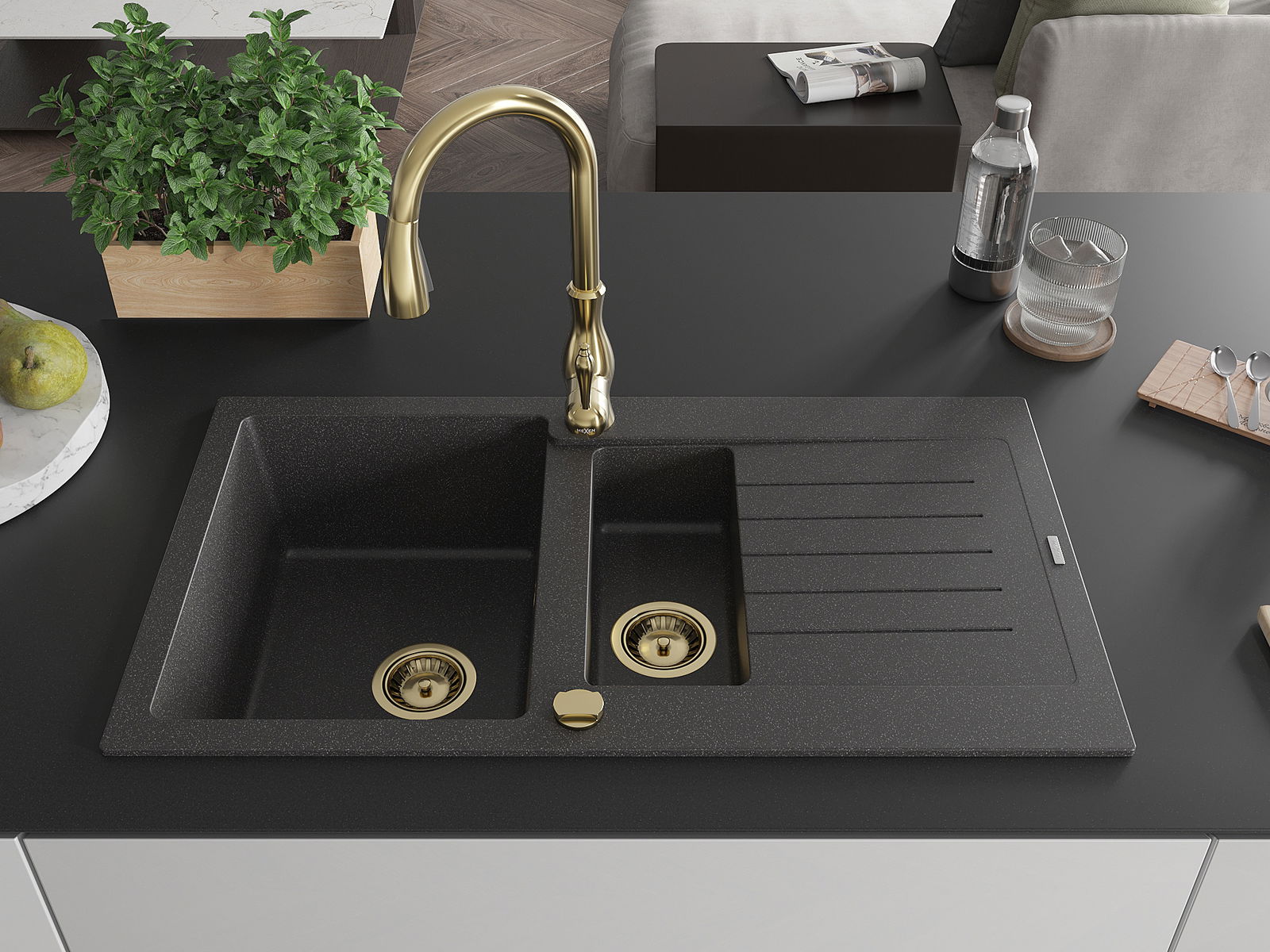Mexen Matias νεροχύτης γρανίτης 1,5-διαμερισμάτων με στραγγιστήρα και