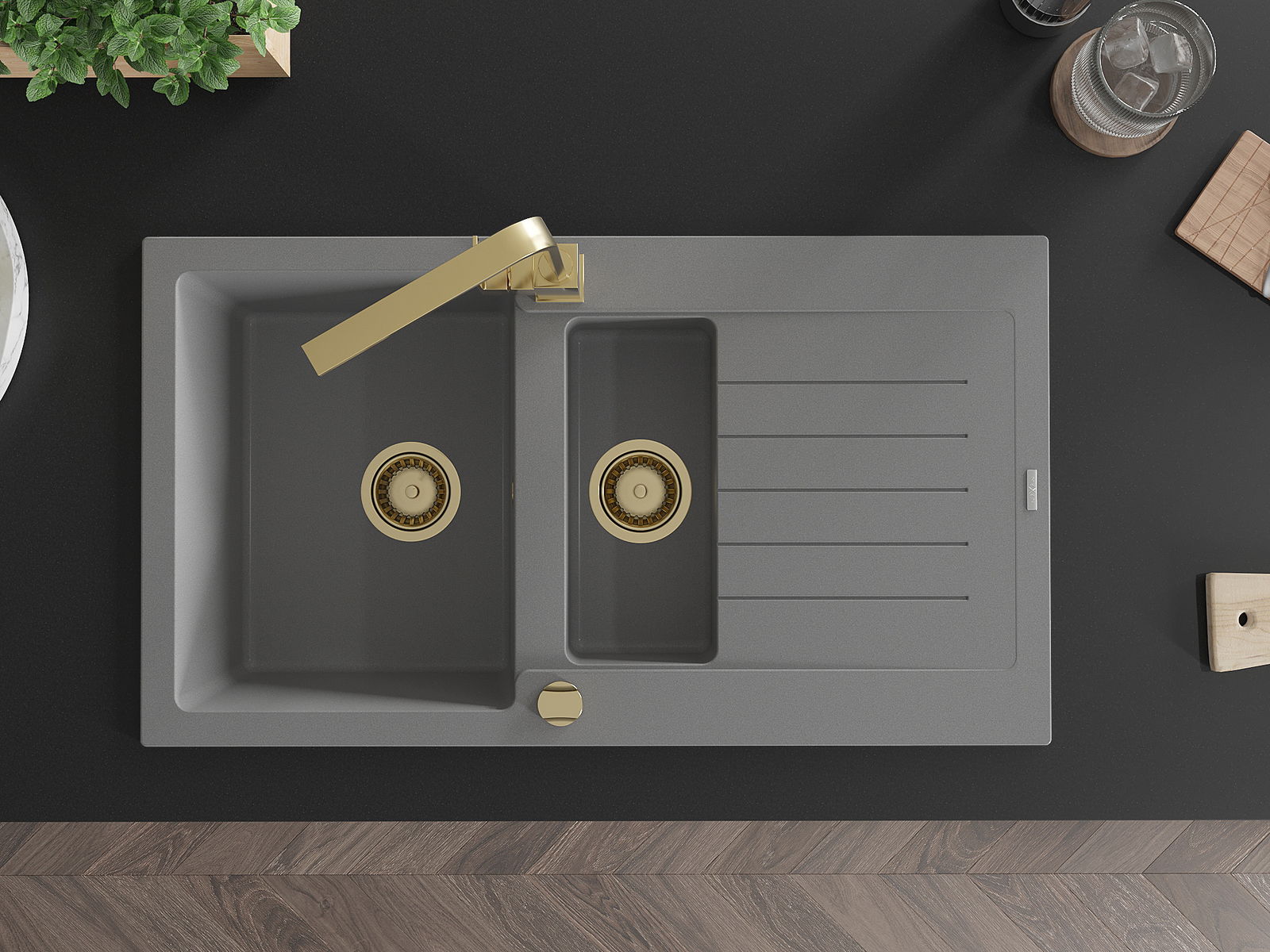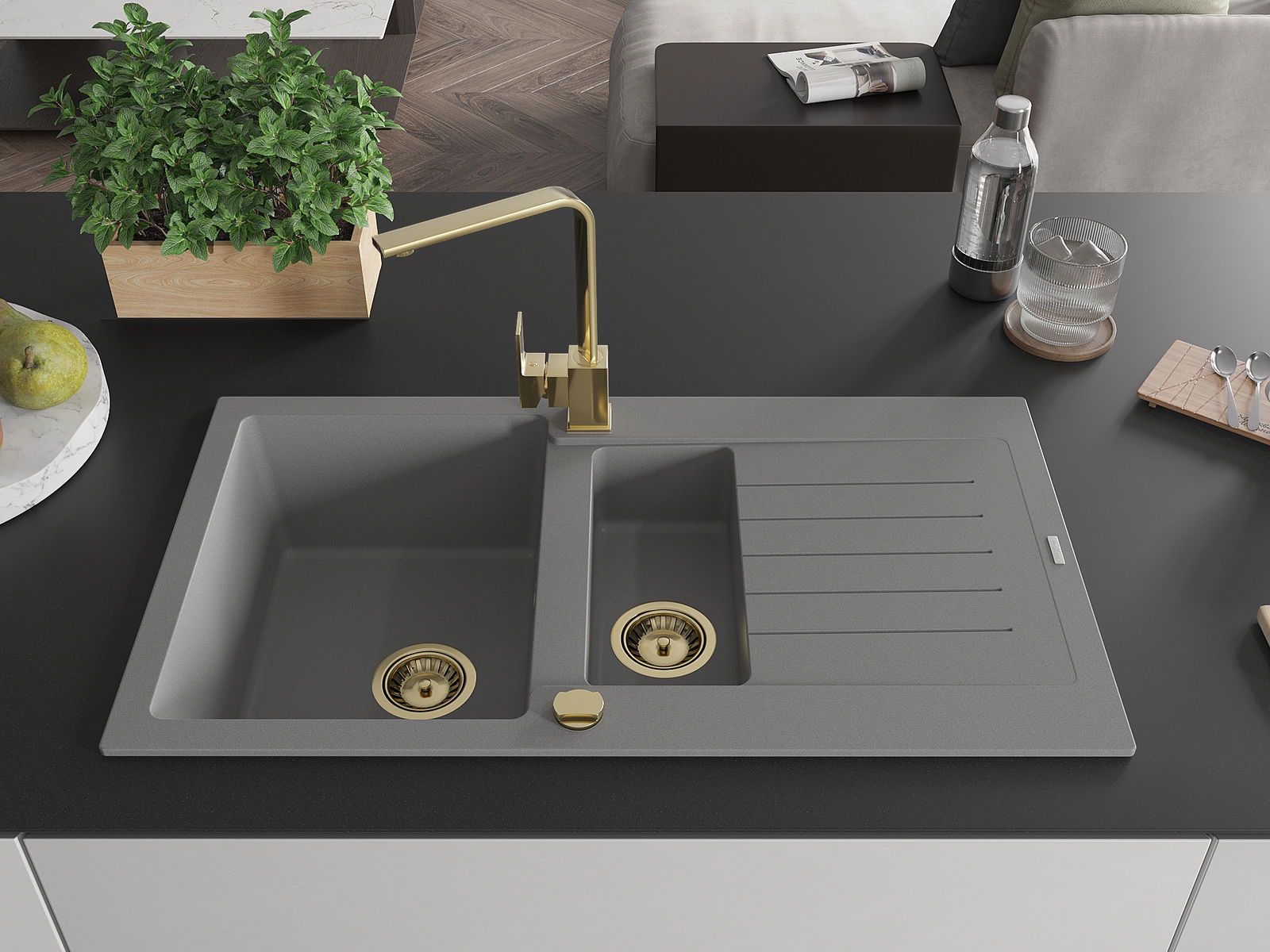 Mexen Matias νεροχύτης γρανίτης 1,5-θαλάμων με στραγγιστήρι και μπαταρία