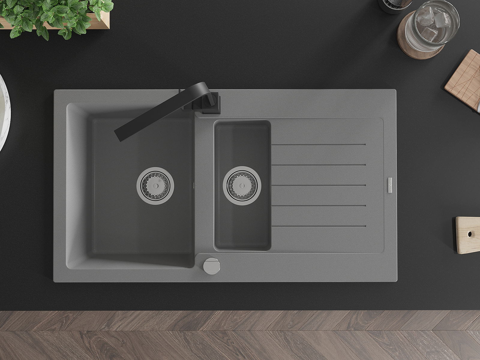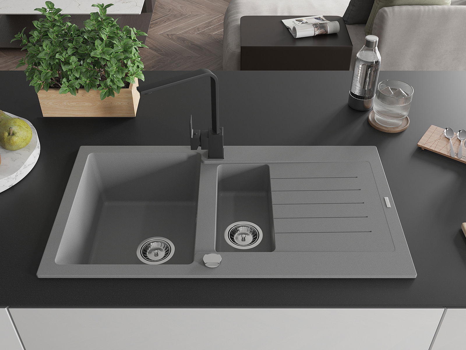 Mexen Matias νεροχύτης γρανίτη 1,5 θαλάμου με αποστραγγιστήρα και μπαταρία
