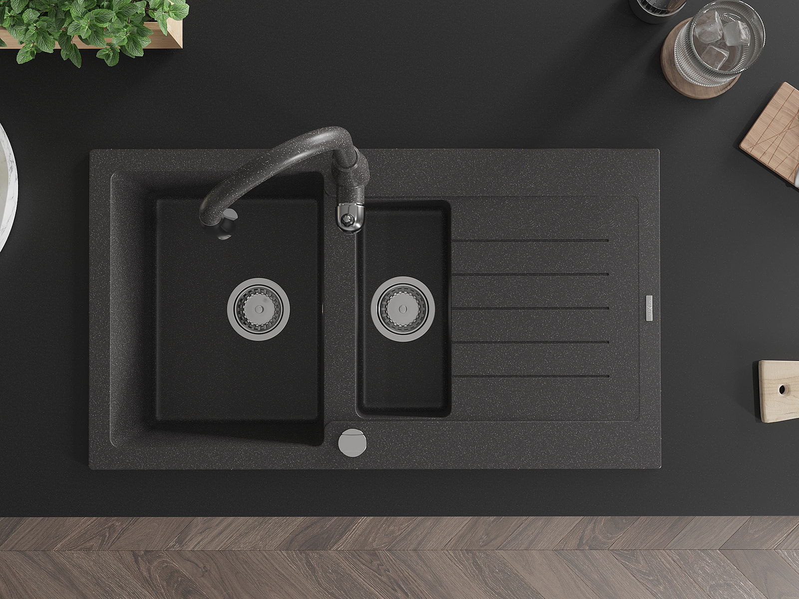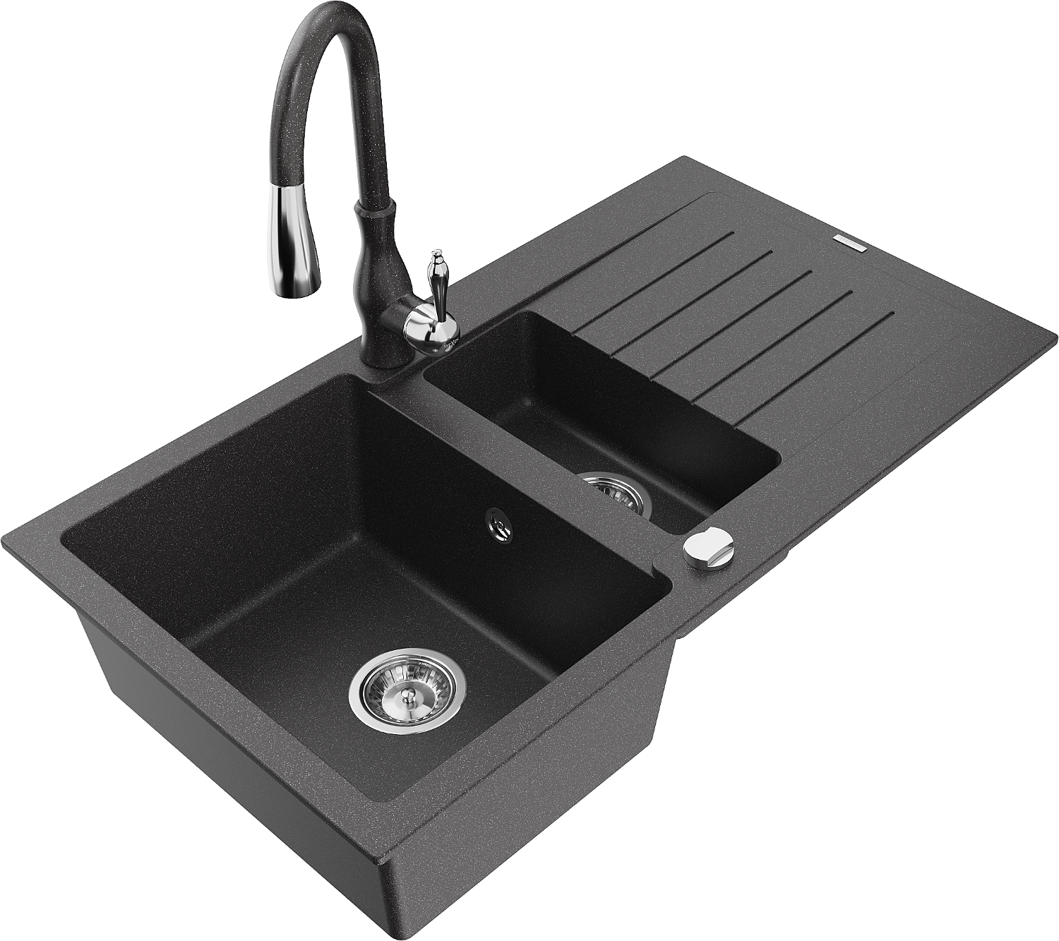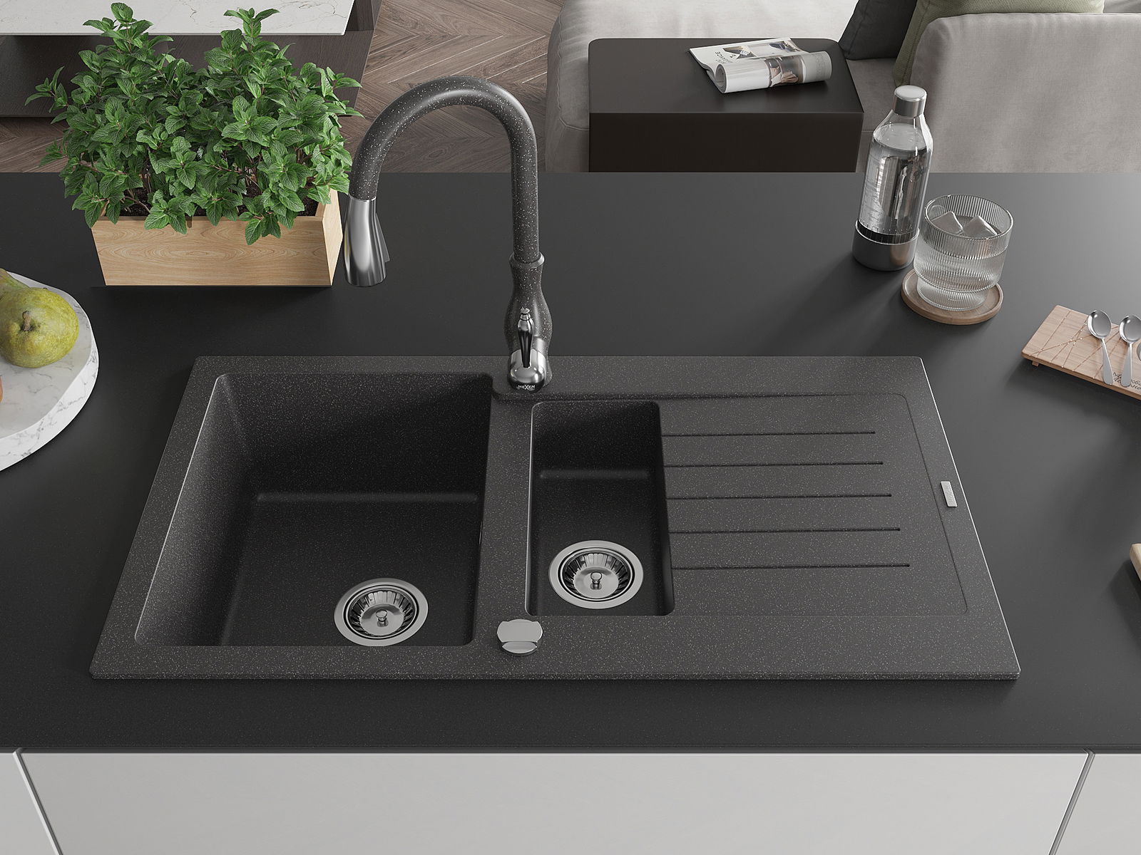 Mexen Matias νεροχύτης γρανίτης 1,5-θαλάμων με στραγγιστήρα και μπαταρία