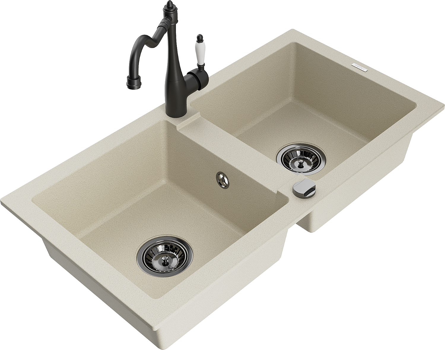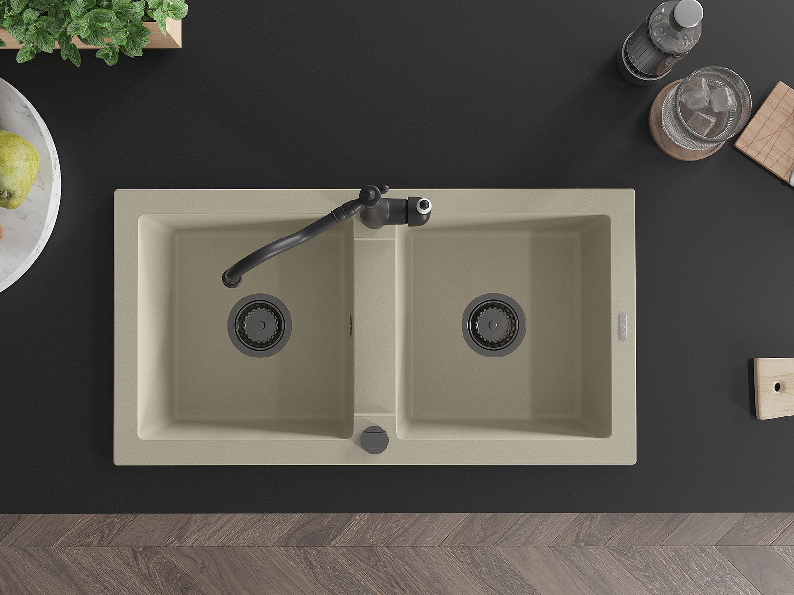 Mexen Mario νεροχύτης γρανίτης 2 μερών με μπαταρία κουζίνας Carla, μπεζ