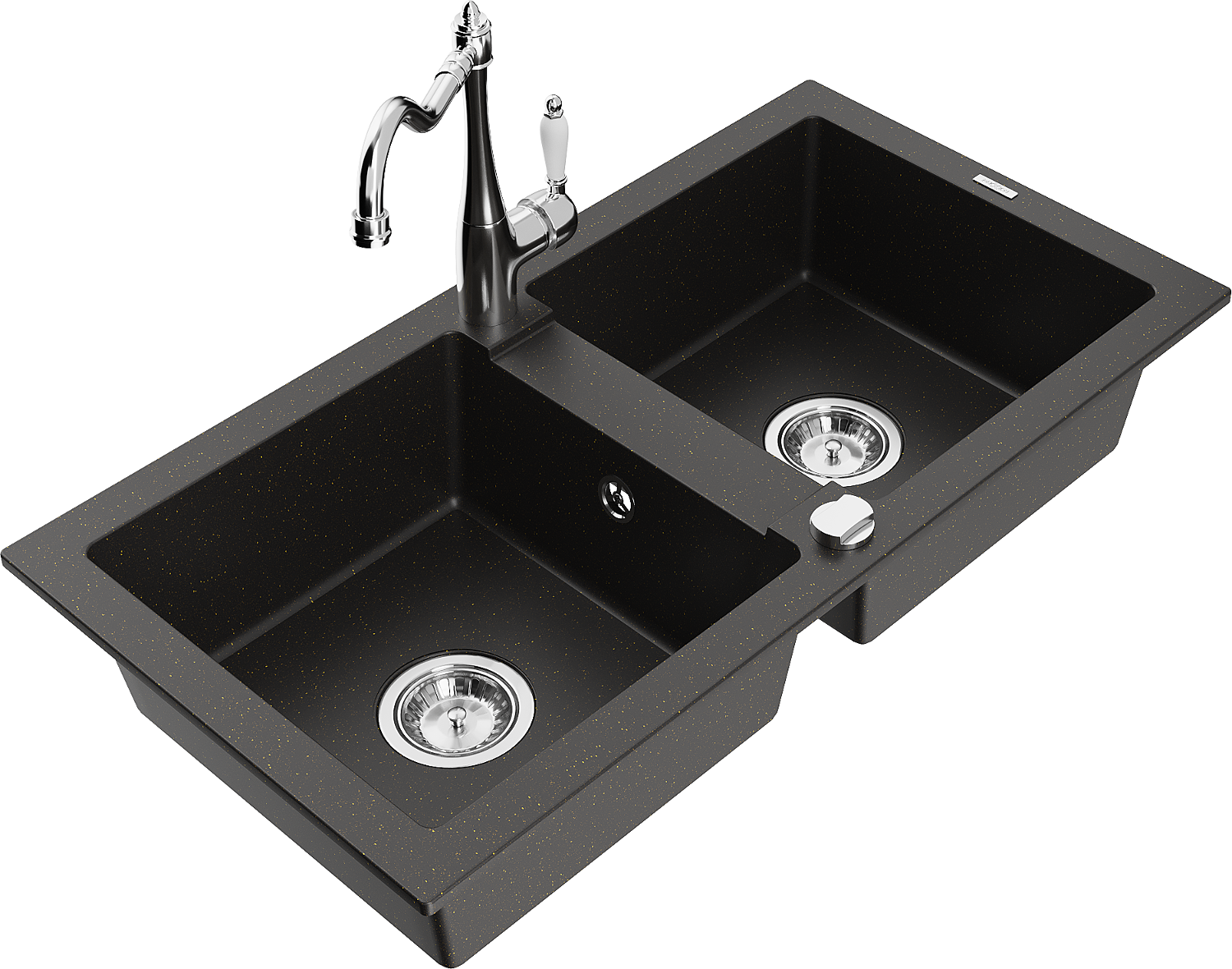 Mexen Mario νεροχύτης γρανίτης 2 θαλάμων με μπαταρία κουζίνας Carla,