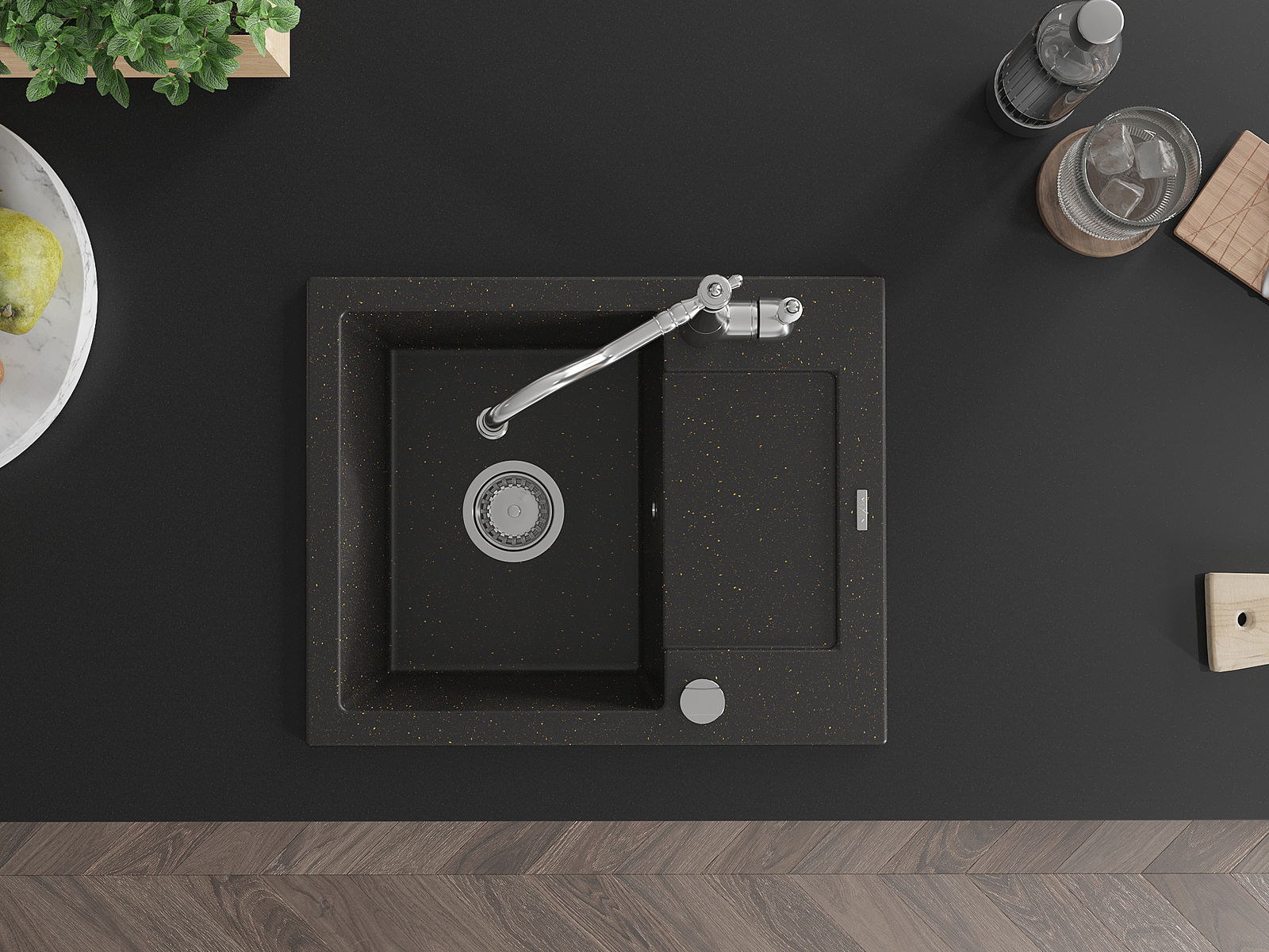 Ο νεροχύτης κατασκευάστηκε από υψηλής ποιότητας γρανίτη. Αποτελεί μια κομψή, και κυρίως πρακτική προσθήκη για κάθε κουζίνα, ανεξάρτητα από το στυλ της. Η υψηλή ποιότητα και η αντοχή του γρανίτη εξασφαλίζουν πολυετή χρήση.