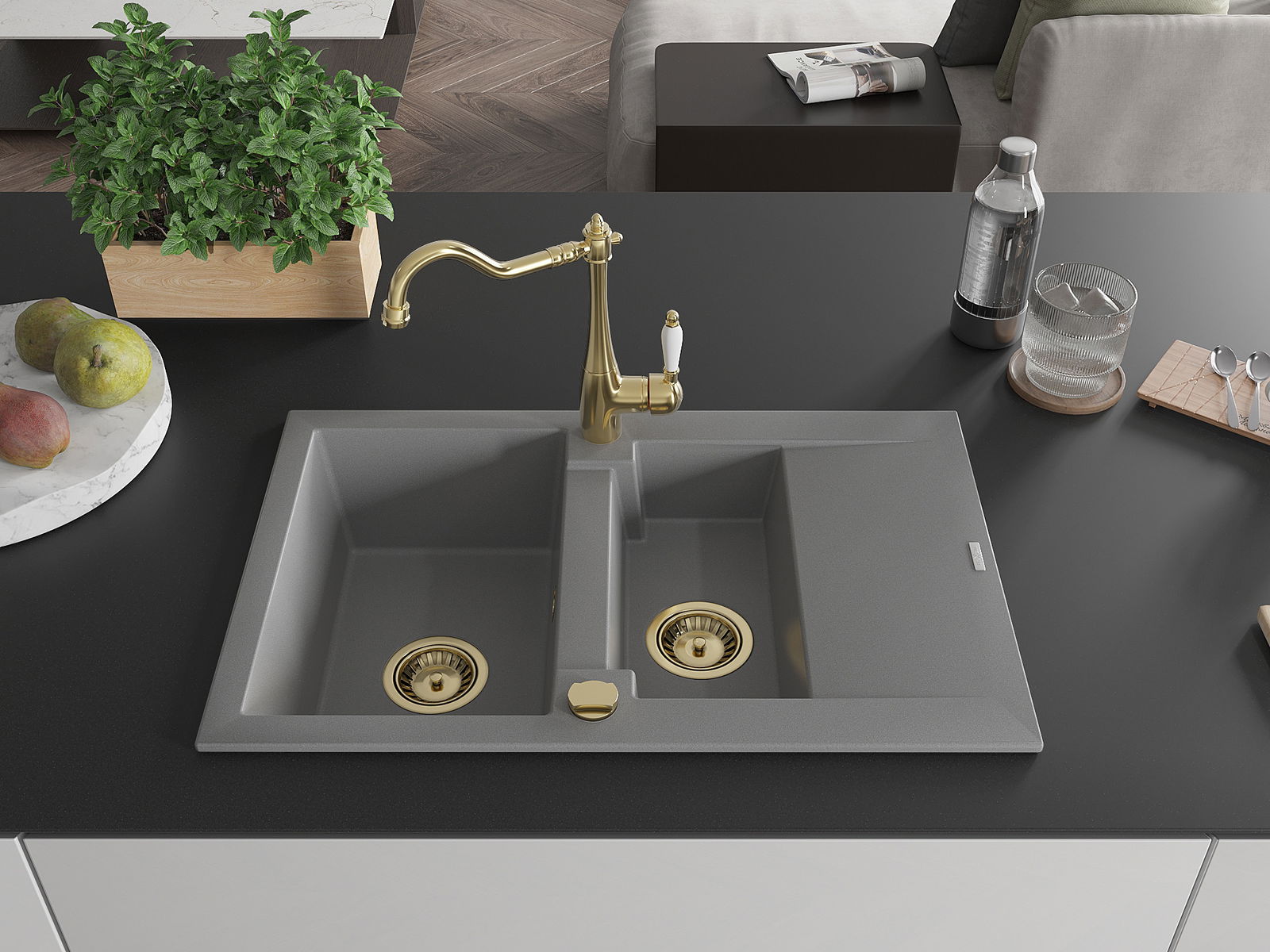 Mexen Gaspar νεροχύτης γρανίτης 1,5-διαμερισμάτων με αποστράγγισμα και