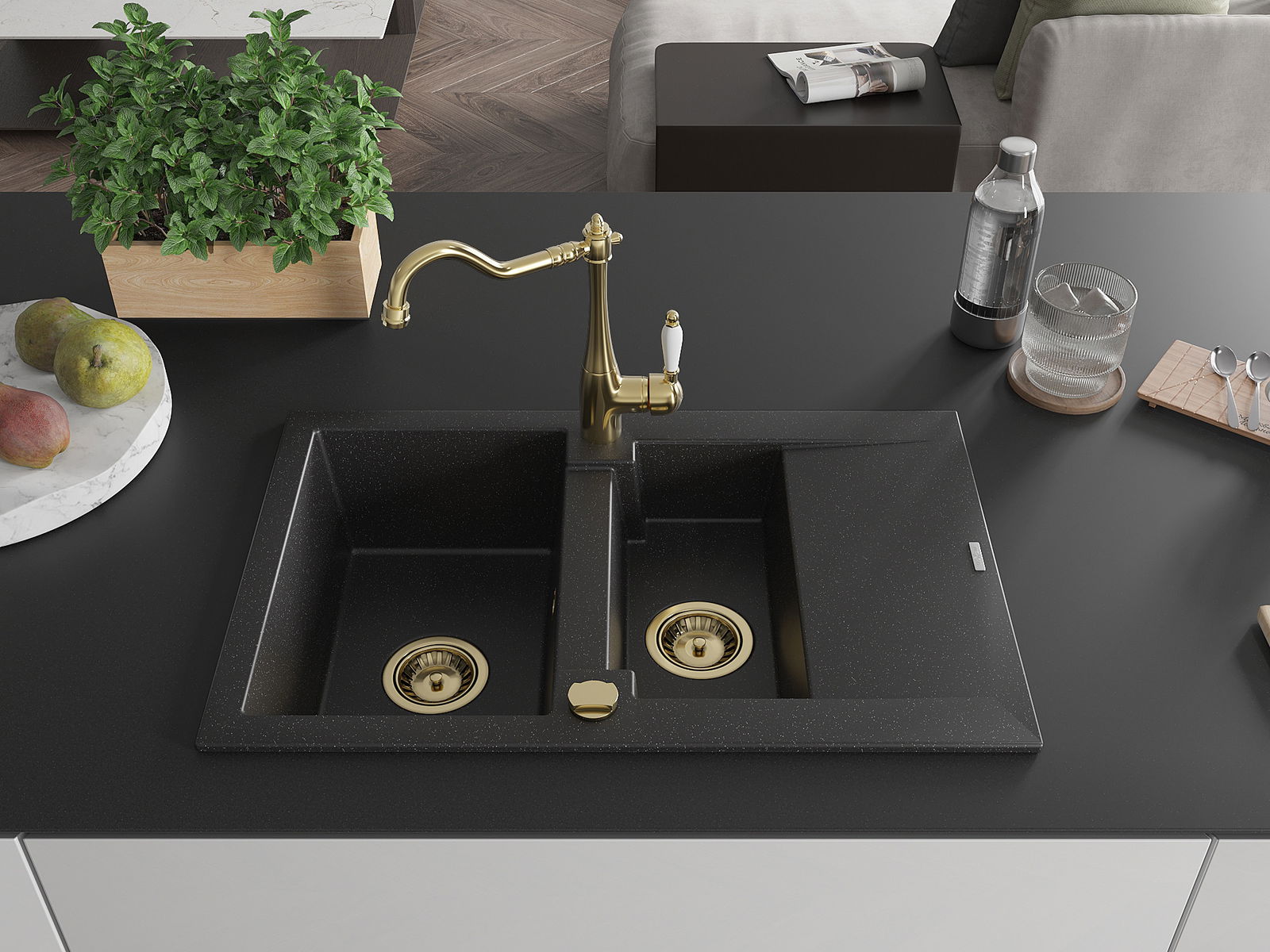Mexen Gaspar νεροχύτης από γρανίτη 1,5 θαλάμων με αποστραγγιστήρα και